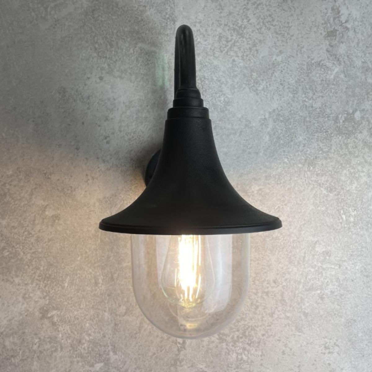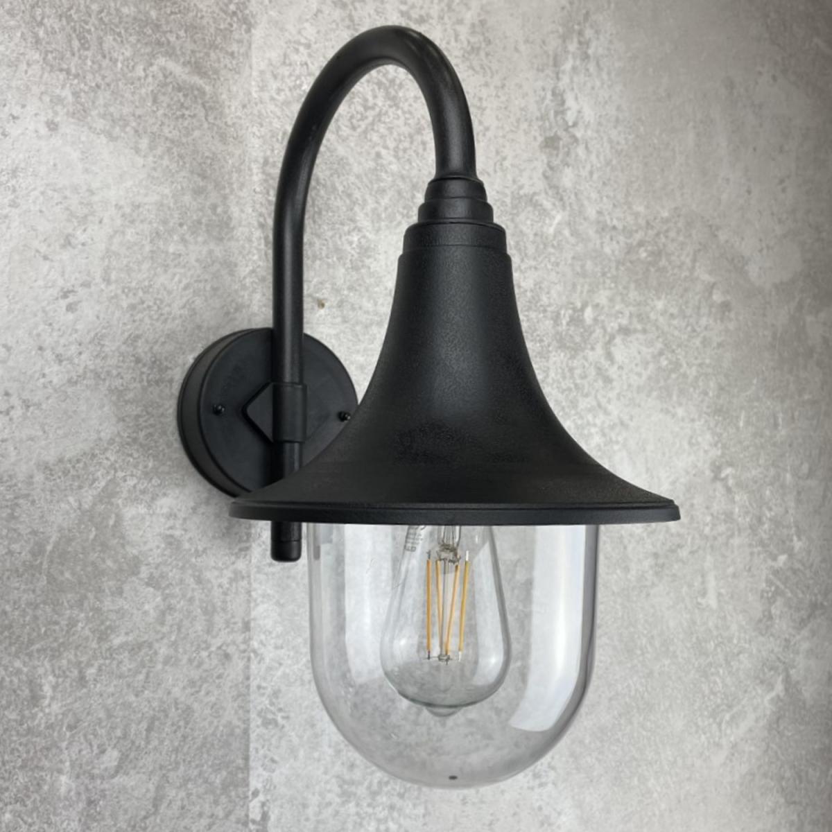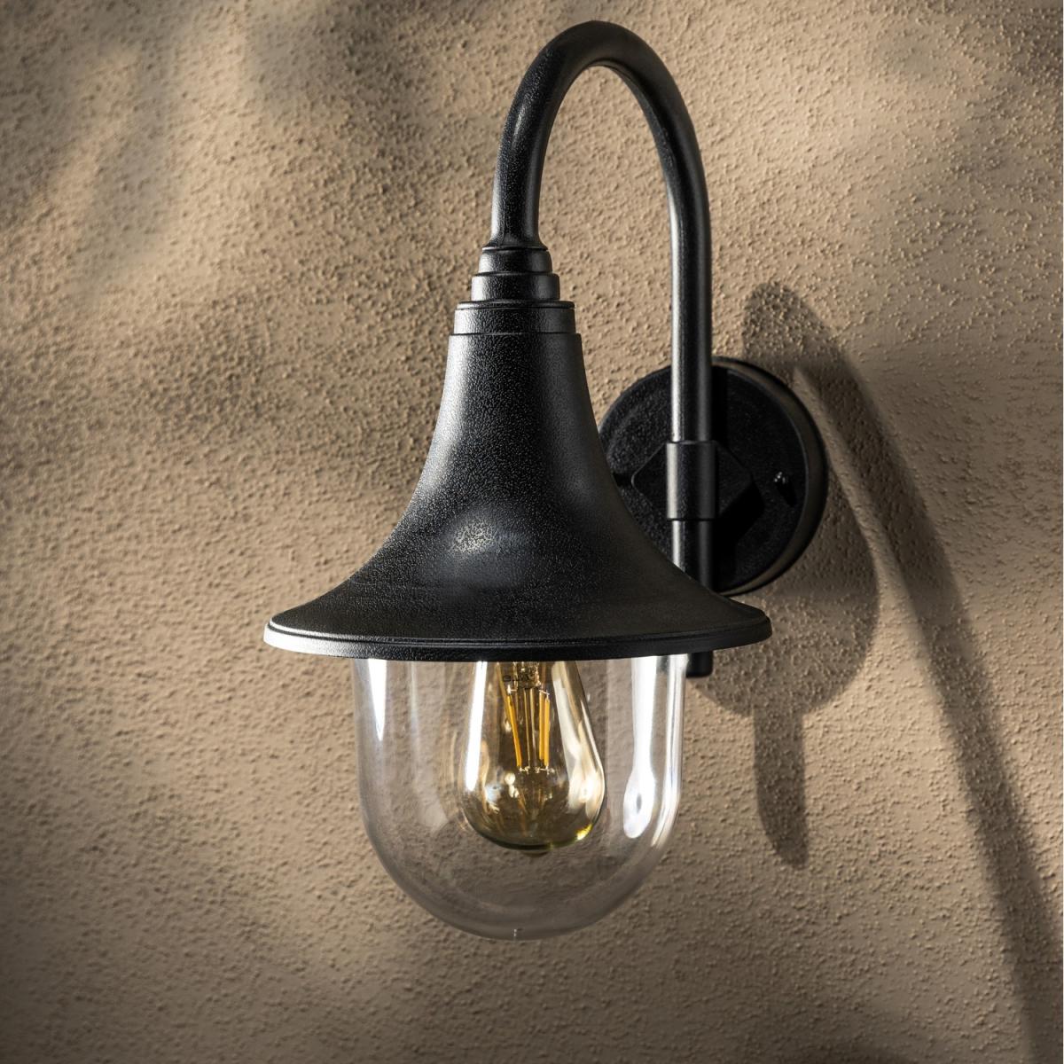 The Dinah black traditional hooked outdoor wall lantern light is constructed of polycarbonate and features an attractive design inspired by traditional lighting styles. This lantern wall light is a great choice for illuminating doorways and porches, creating a warm and inviting look and a safe environment. With an IP44 safety rating, the Dinah garden wall light is suitable for mounting on outdoor walls. Use with LED bulbs enjoy outdoor to enjoy your lighting without raising your energy bills. IP44 Rated for outdoor use, 220-240V mains power, ambient temperature -20 to +30, class 21 x E27 bulb (not included), 60W max