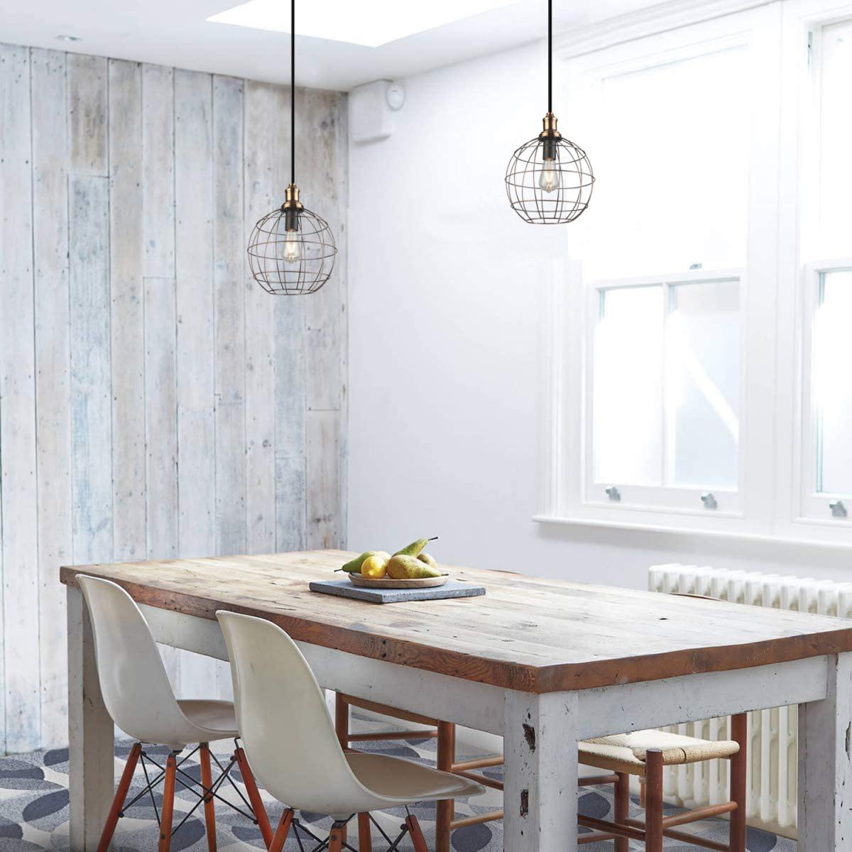 I love this brass wire ceiling light for its minimalist industrial charm, making it versatile for a range of interiors. It works particularly well in modern or retro-inspired spaces, adding warmth and character without overwhelming the design. Practical styling tips include hanging it over a kitchen island or dining table to create a focal point, or grouping a few at different heights in a cosy nook for added visual interest. Pair it with vintage-style bulbs or filament bulbs to enhance its vintage appeal, or keep it simple with sleek LED options for a contemporary look. Its brass finish also makes it easy to coordinate with other metal accents in the room.
