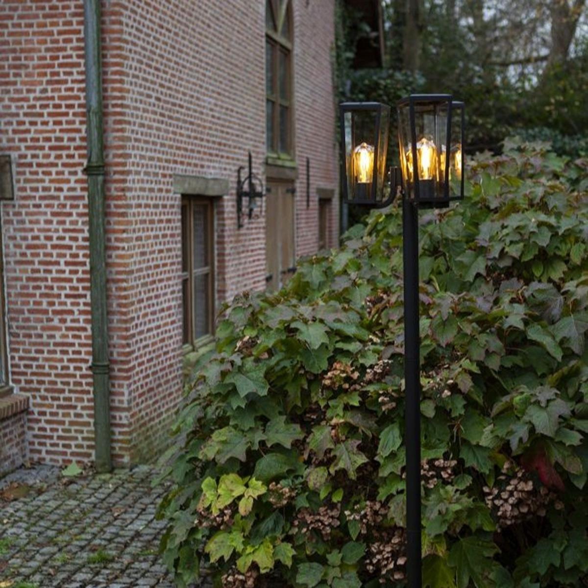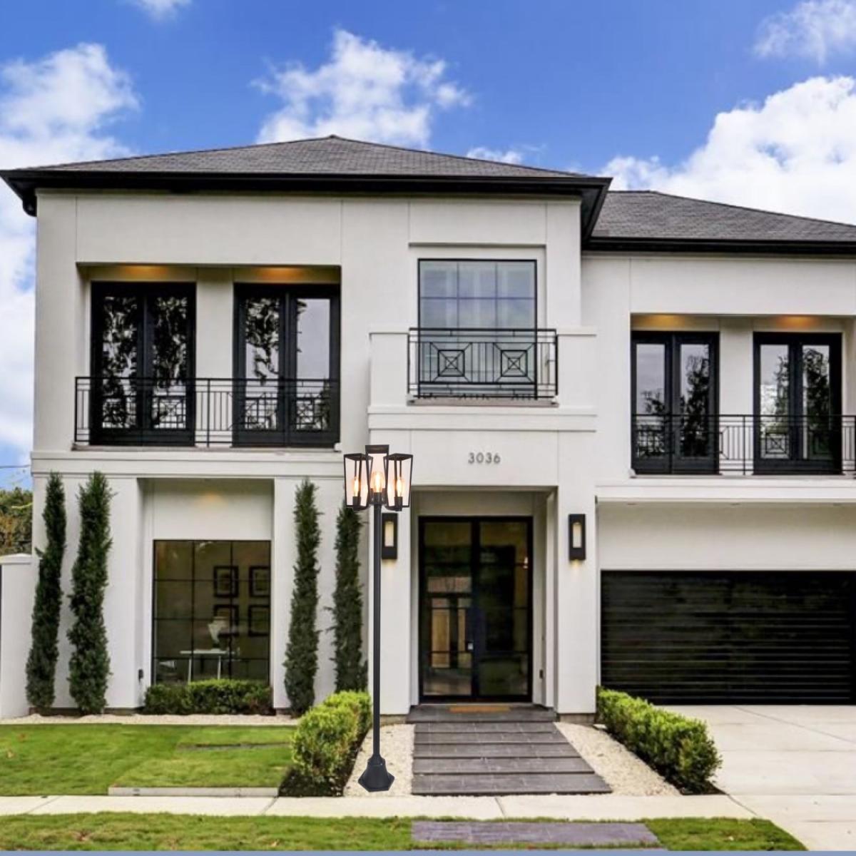 I love this black outdoor lantern because of its sleek, modern silhouette combined with the practical utility it offers. It works particularly well in contemporary or minimal garden settings, adding a touch of sophistication without overpowering the landscape. For styling tips, consider placing this tall three-head post light along a path or driveway for both illumination and visual interest. It also pairs nicely with neutral or dark-toned fencing and planting schemes, helping to create a cohesive outdoor aesthetic. To enhance its visual impact, keep surrounding plantings tidy and let the lantern be the focal point-its understated design makes it versatile enough to work in both formal and casual exteriors.