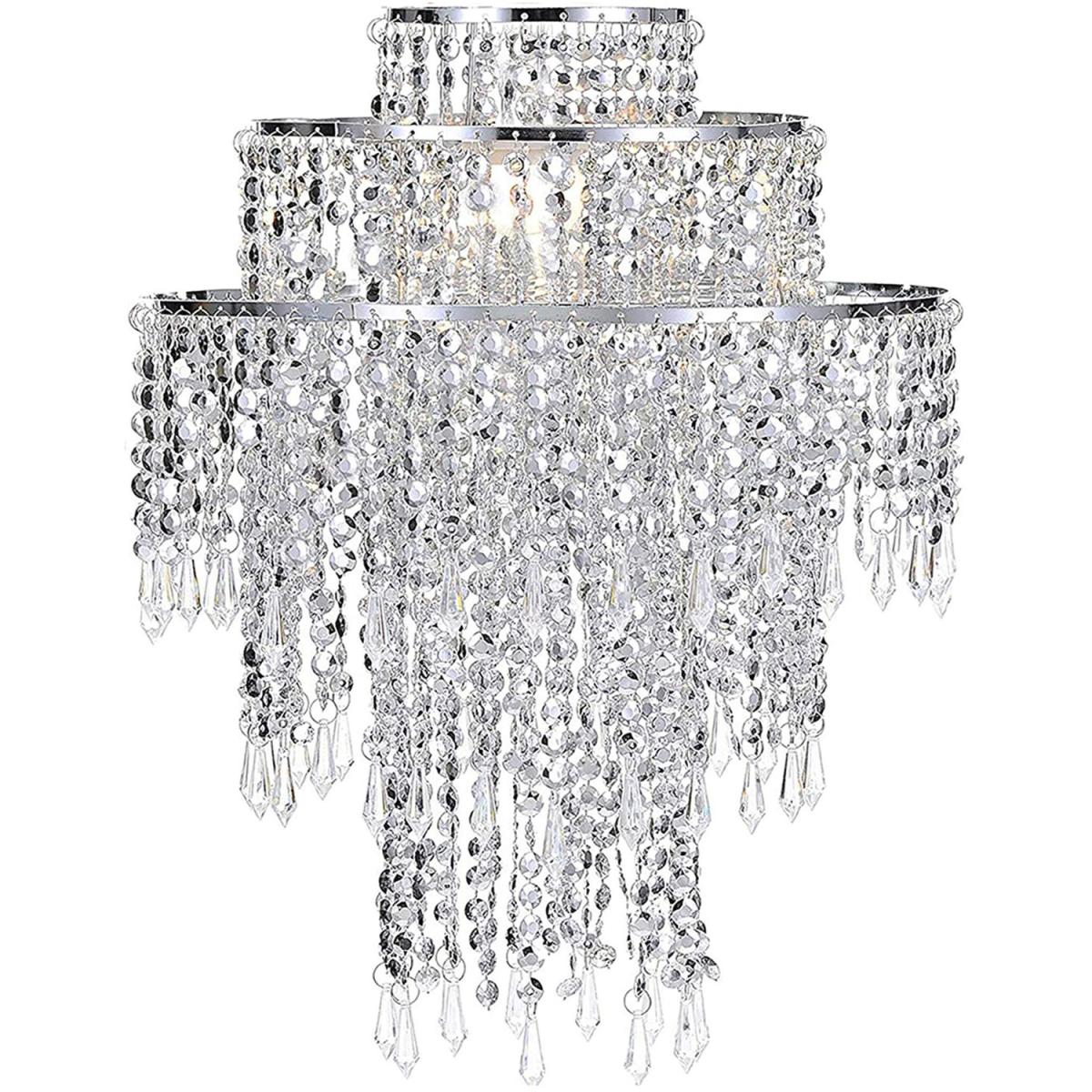 CGC LIZA Three Tier Chandelier Crystal and Chrome Ceiling Light Shade - Chrome