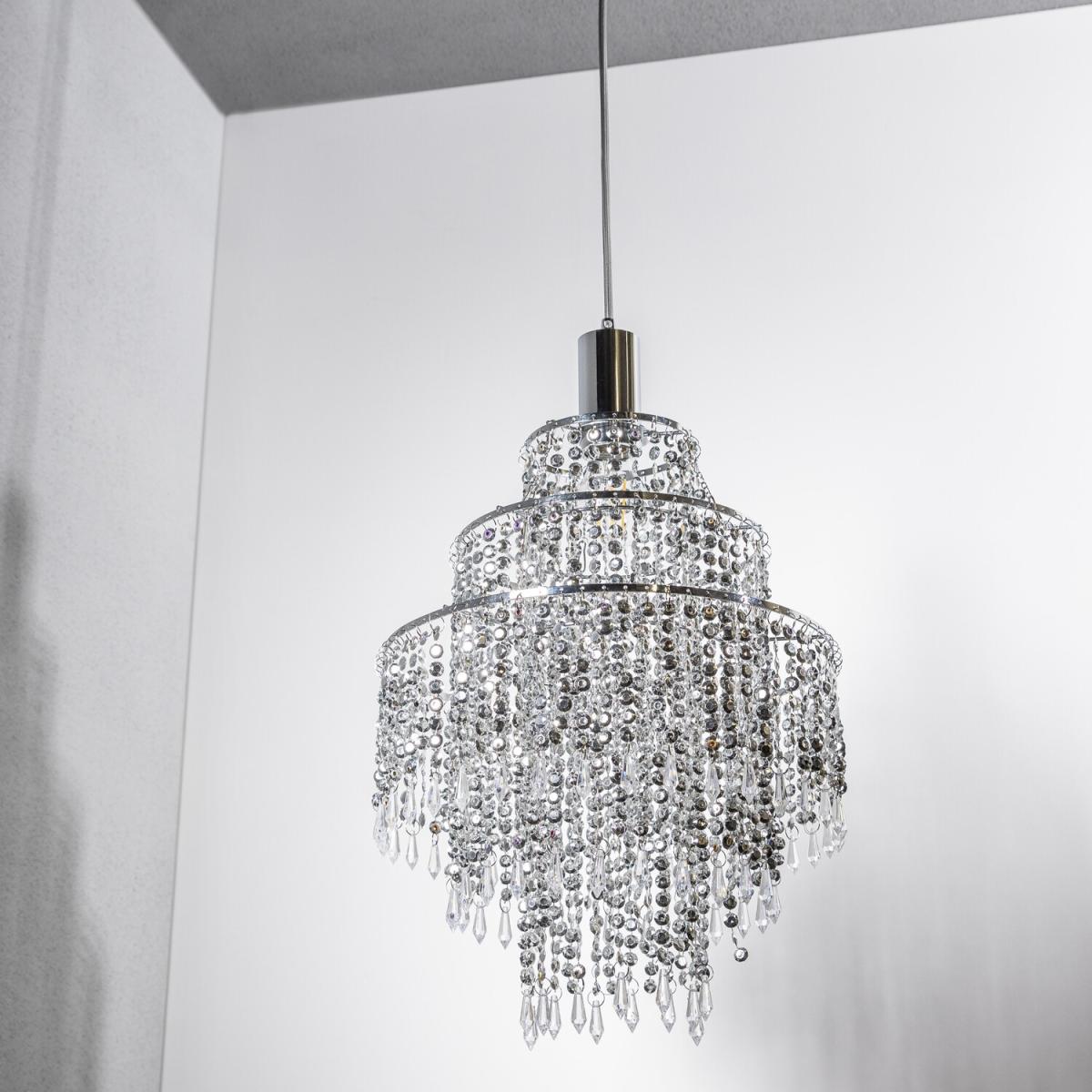 Elegant and vintage design, round and droplet crystals with chrome finish. Perfect shade for bedrooms, dining rooms, living rooms, conservatories, hallways, hotels, entrances, stairways. Rated for indoor use, adjuster ring included, 40W max.