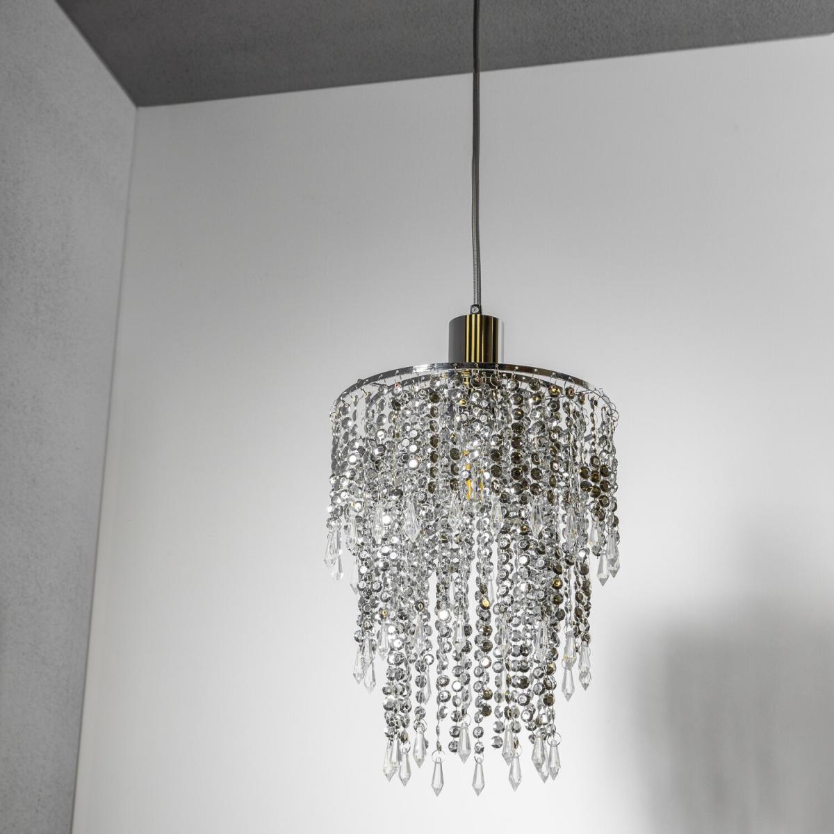 Elegant and vintage design, round and droplet crystals with chrome finish. Perfect shade for bedrooms, dining rooms, living rooms, conservatories, hallways, hotels, entrances, stairways. Rated for indoor use, adjuster ring included, 40W max.