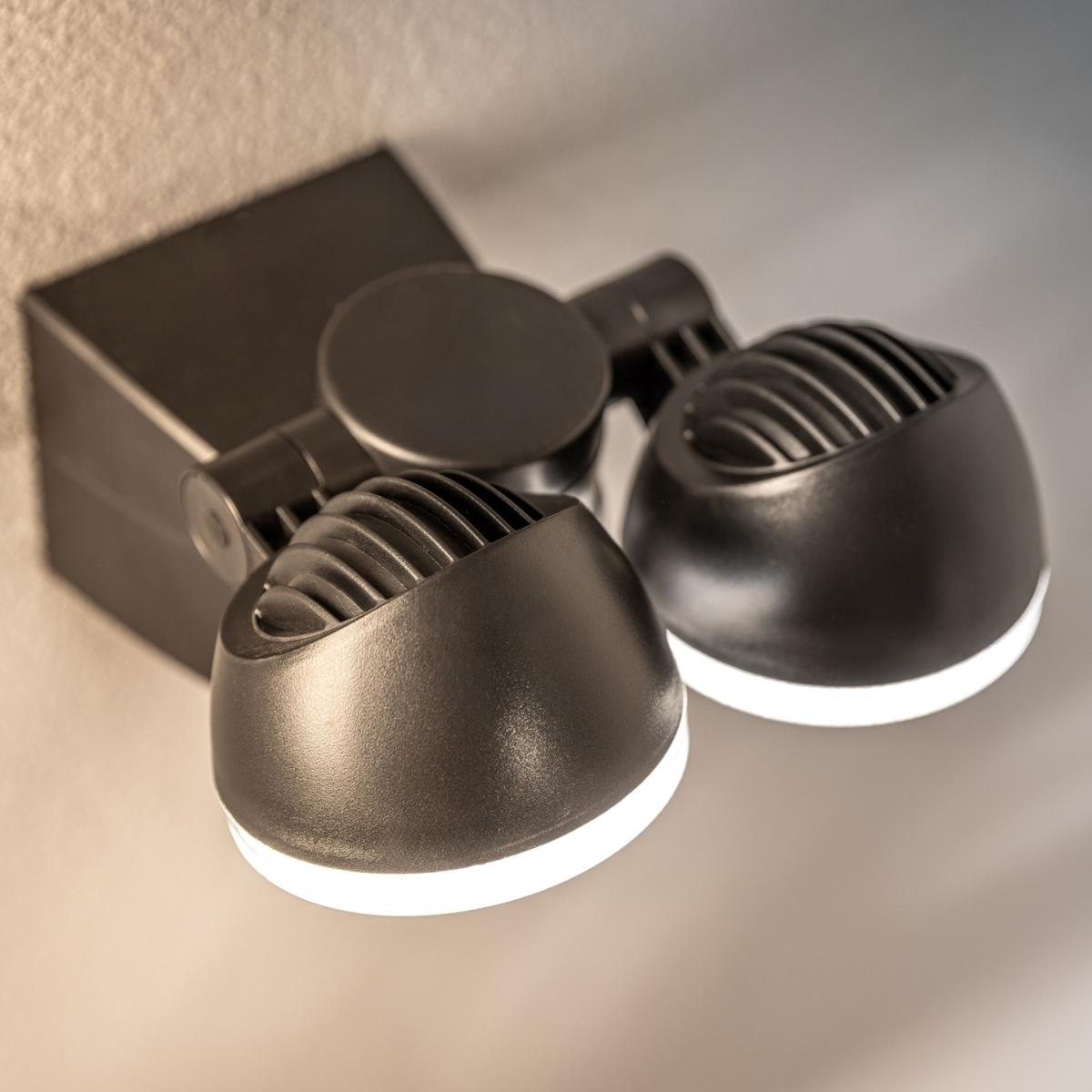 The Martha outdoor double spotlight is a stylish and fashionable outdoor solution for your home. The easily adjustable heads of this outdoor wall lamp allow it to be used functionally for lighting paths and aesthetically decorating the walls of your home with a beautiful, bright glow. Made from polycarbonate making it rust-proof. LED 1000 lumens, cool white 6500k, 2 X 6. W. IP44 Rated for outdoor use, 220-240V mains power, ambient temperature -20 to +30, 50. Hz.