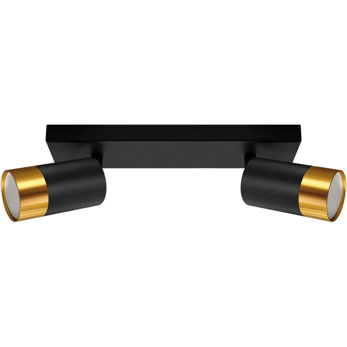 Puzon's elegant and stylish finish makes it the ideal accent to any room. It will look perfect in both traditional and modern environments. It has two adjustable heads so you can set the spot lights according to your preferences and can be fitted to either a wall or ceiling. For longevity and durability, the lamp is constructed of aluminium that has been powder coated black and finished with gold detailing. It has an IP20 level of protection, making it touch and dust resistant. Intended for internal use.