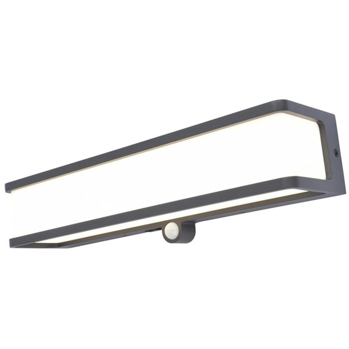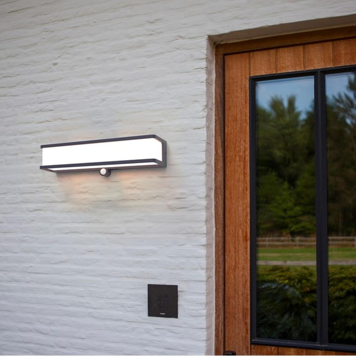 Our Reggie solar-powered wall light with motion sensor delivers style and durability and is a smart choice for your exterior lighting. With its modern dark grey heavy-duty aluminium construction and opal polycarbonate diffuser, this wall light is hardwearing and weatherproof. For sophisticated yet robust outdoor lighting with no wiring required our Reggie solar dark grey outdoor modern wall light with motion sensor is a strong contender. A solar panel on the luminaire generates electricity from sunlight which is stored in a rechargeable battery. You can choose between four settings. The LEDs are installed behind the rectangular diffuser and emit universal white light in all directions.