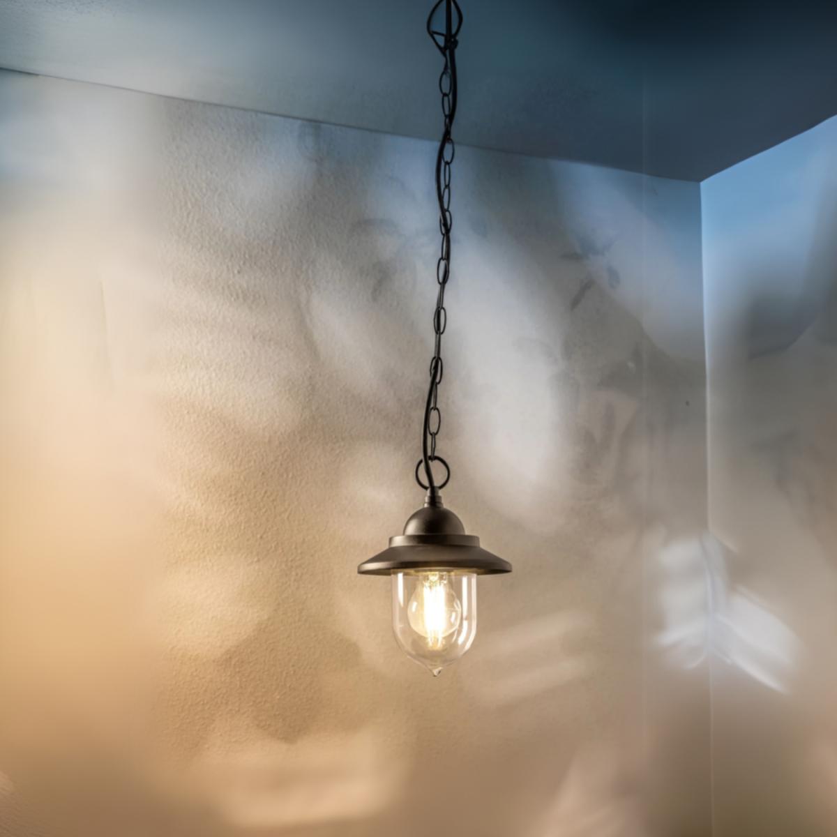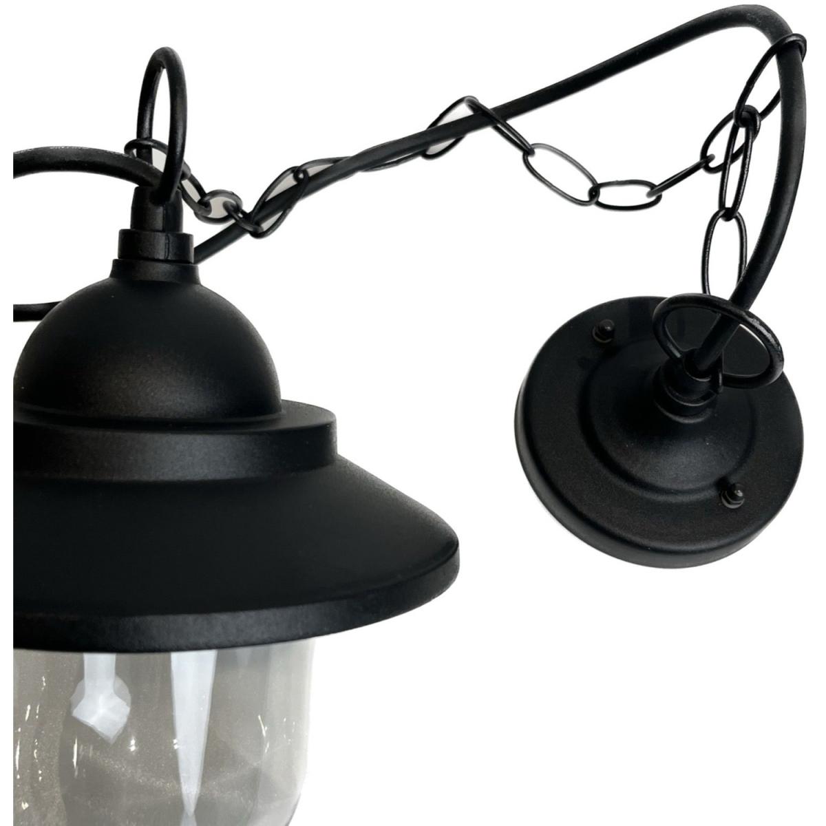 Our Ryder lantern delivers on style and durability and is a smart choice for your exterior lighting. With its black powder coated aluminium construction teamed with clear polycarbonate diffuser, this lantern is hardwearing and rust and weatherproof. Built for life outdoors, it has an IP44 rating which means it can withstand the harshest of weather conditions. For sophisticated yet robust outdoor lighting, our Ryder black outdoor traditional lantern is a strong contender. Height can be adjusted to suit, lantern is suspended by matching black chain. IP44 Rated for outdoor use, 220-240V mains power, ambient temperature -20 to +30, class 11 x E27 bulb (not included), 18W max