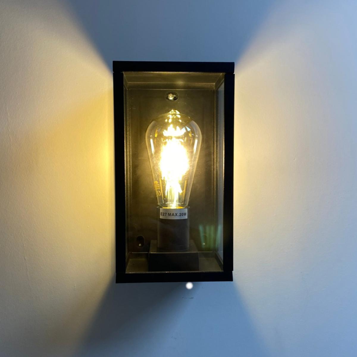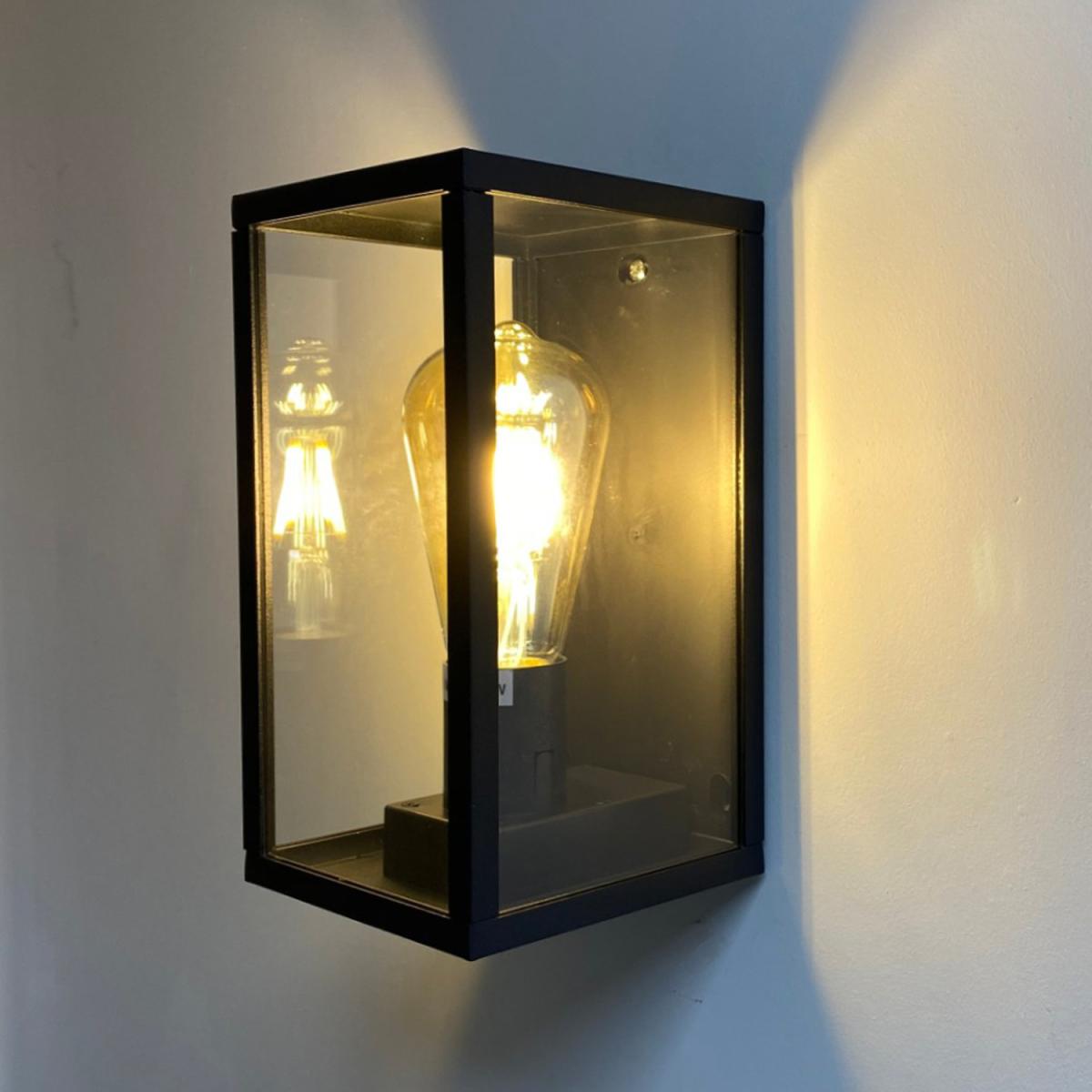 A modern take on a traditional design outdoor wall light is perfect for adding style and security. The traditional front-door lantern has had a modern makeover in the form of our Scarlett Wall Light with its square glass windows and a striking matt black finish this is sure to add a statement to any wall. 1 x E27 bulb (not included), max 20. W. IP54 Rated for outdoor use, 220-240V mains power, ambient temperature -5 to +30, class 2.
