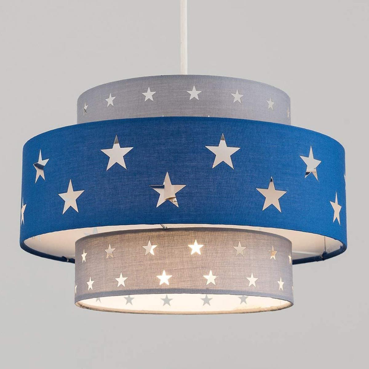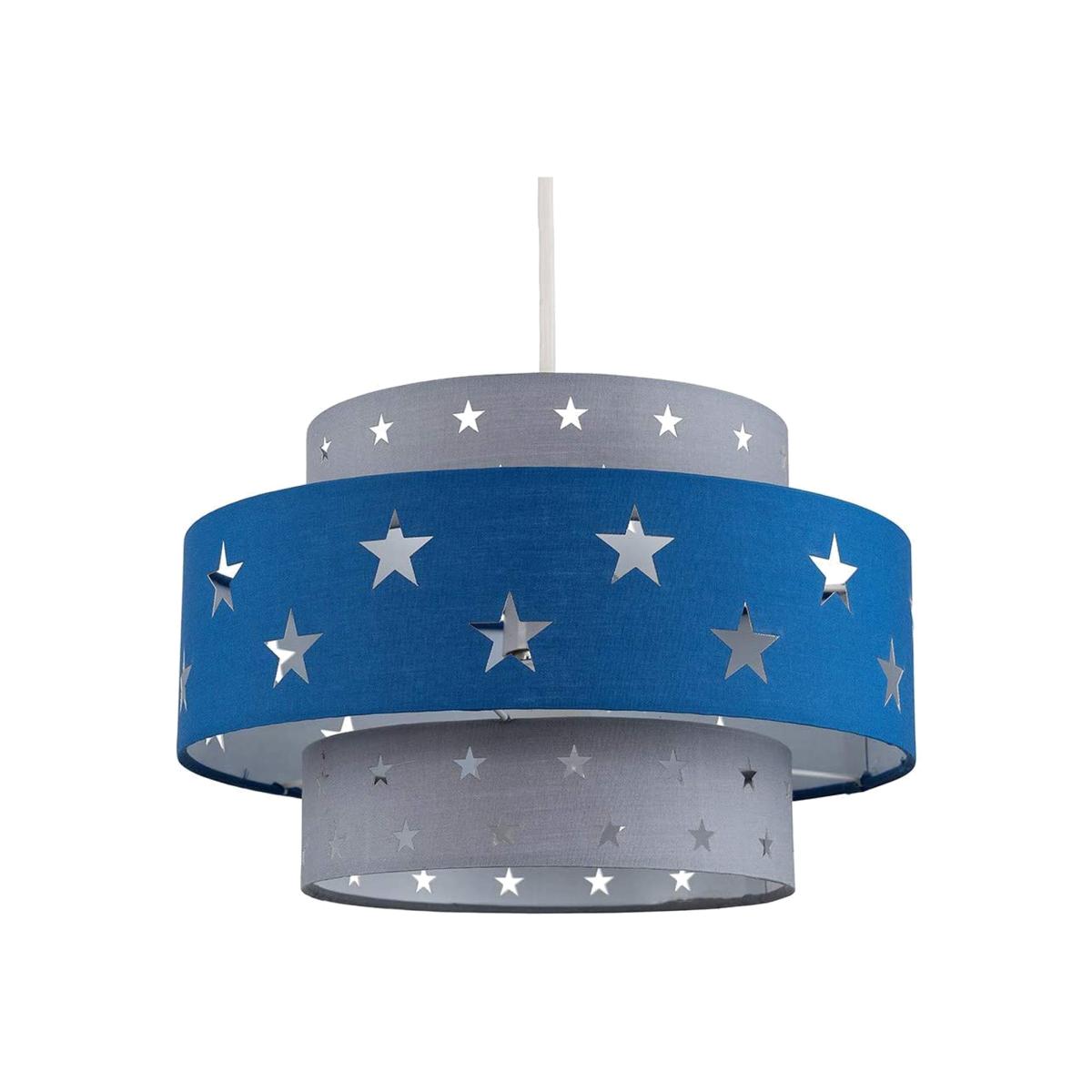 CGC STARLIGHT Grey and Navy Blue Star Two Tier Easy Fit Lamp Shade - grey