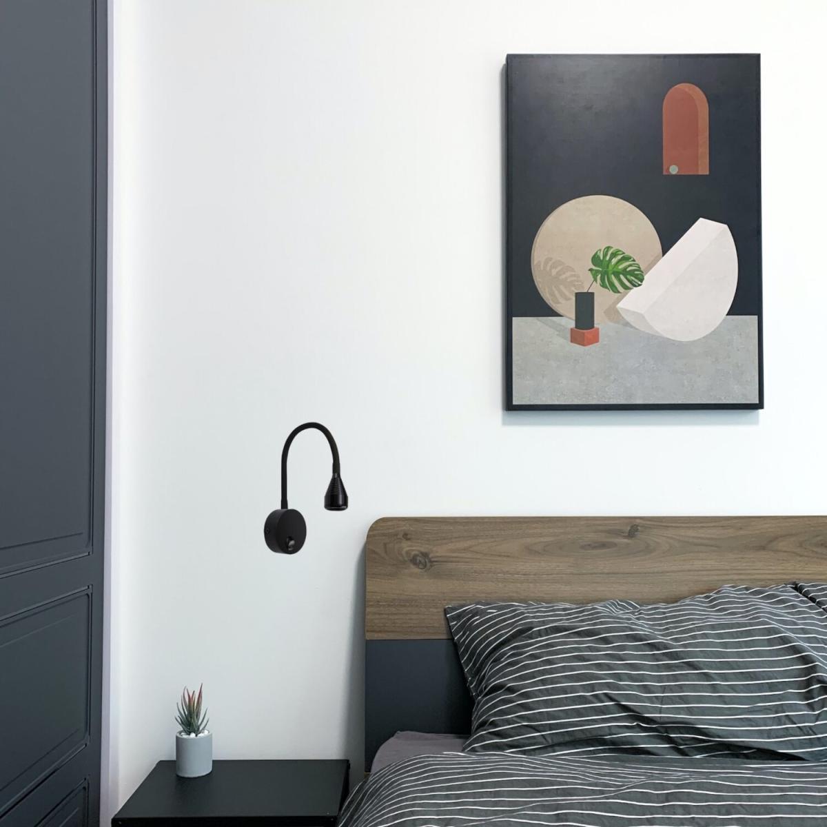I love this black flexible wall light because it offers a sleek, modern look with its minimalist design, making it a versatile choice for a variety of interiors. It works particularly well in contemporary or urban-style bedrooms, thanks to its clean lines and practical flexibility. For styling, consider pairing it with neutral bedding or textured wall panels to make it stand out without overwhelming the space. Its adjustable arm makes it perfect for bedside reading, while the discreet black finish ensures it blends seamlessly with both statement and subtle decor. Keep in mind that it can also be a smart addition in minimalist or industrial interiors where function meets understated design.
