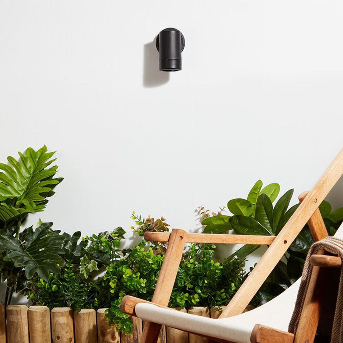 Our Valentine black outdoor single spot wall light would look perfect in a modern or more traditional home design. Outside wall lights can provide atmospheric light in your garden, at the front door or on the terrace as well as a great security solution. It is designed for durability and longevity with its robust material producing a fully weatherproof and water resistant light fitting. Use LED bulbs to make this light a low energy low cost lighting solution. IP44 Rated for outdoor use, 220-240V mains power, ambient temperature -20 to +30, class 2 1 x GU10 bulb (not included), 35W max