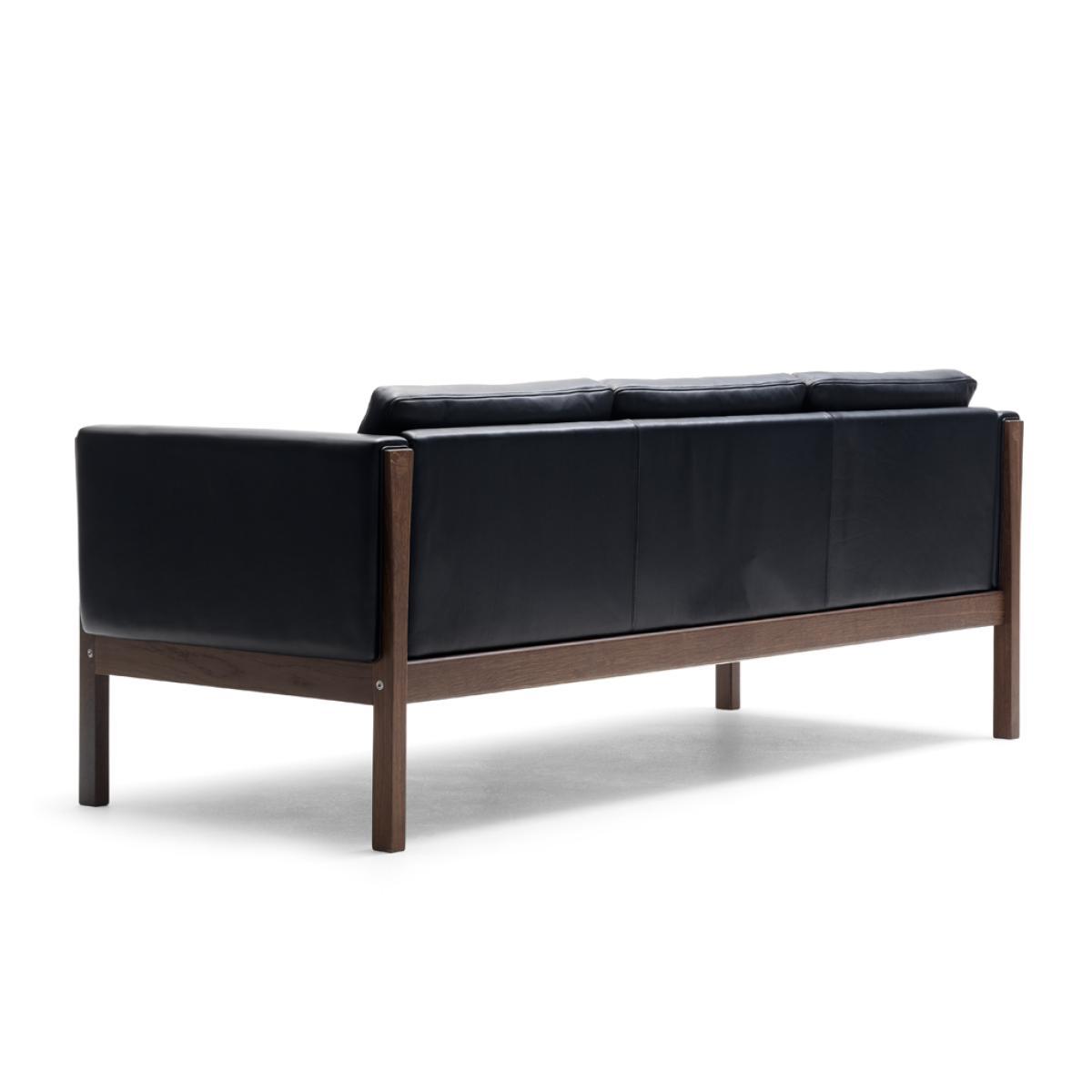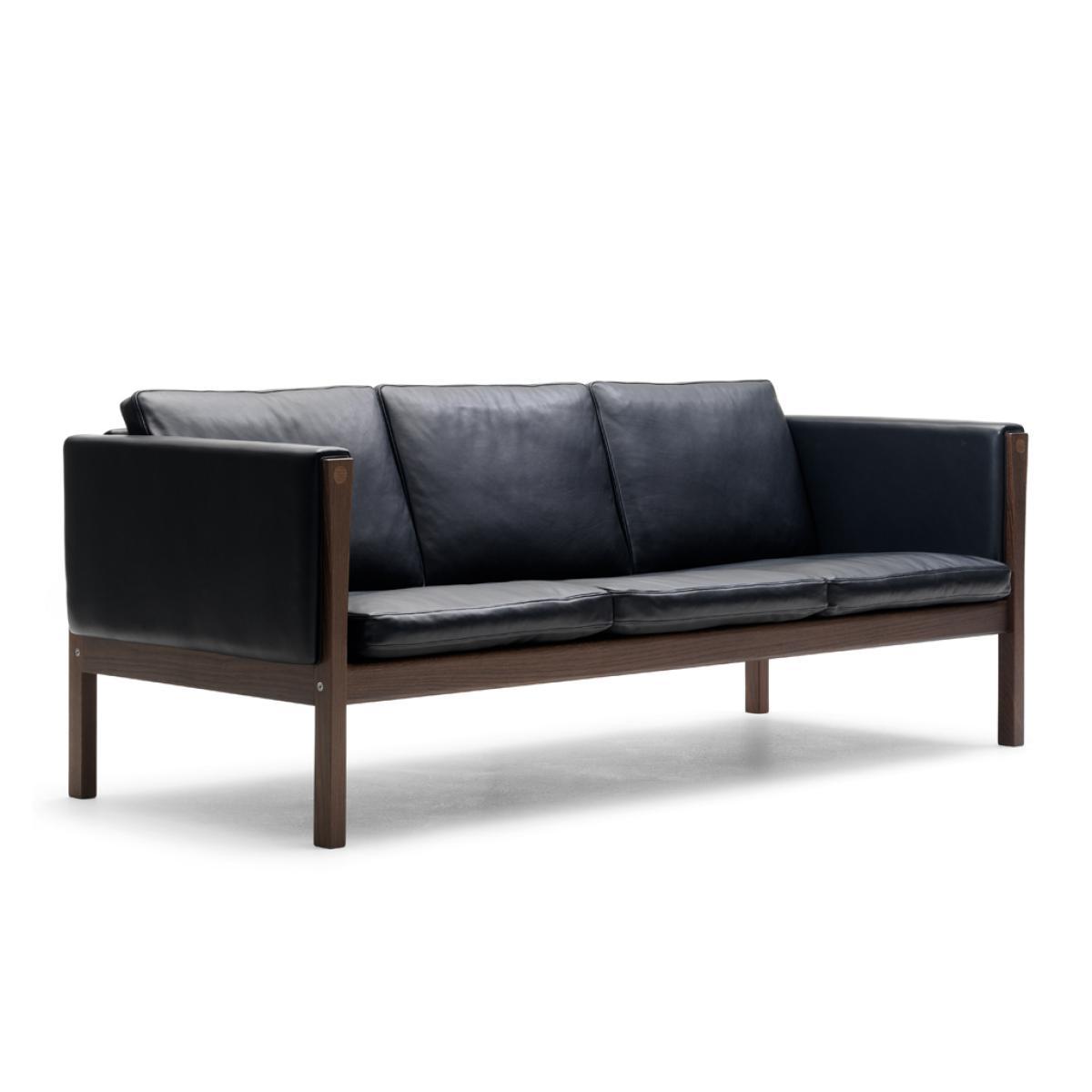 Designed in 1965 by Hans J. Wegner and produced by master craftspeople at Carl Hansen & Søn, the dynamic, sculptural presence of the CH163 Sofa is crafted from Danish oiled walnut and upholstered in rich black Sif leather. Each CH163 Sofa is handcrafted from sustainably sourced Danish oiled walnut by master craftspeople in Denmark and showcases an elegant silhouette with ergonomic lines. Its contemporary proportions are cushioned with an upholstered seat and back, covered with are Carl Hansen & Søn's premium Sif leather. Supple Sif leather upholstery is crafted using full grained, uncoated pure aniline ox hide, hand-picked from the finest hides and uncoated for the most supple texture and highest breathability of all Carl Hansen leathers. With added features such as an oiled walnut body, the CH163 Sofa is a contemporary take on a classic design. The CH163 Sofa in walnut and leather is an excellent example of iconic Danish designer Hans J. Wegner's constant striving towards organic simplicity in his work, and his desire to create sculptural beauty, comfort and outstanding stability.