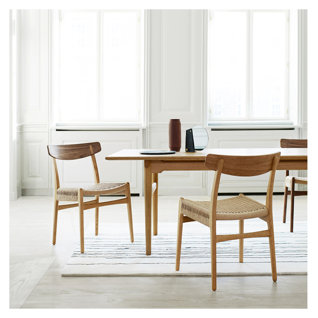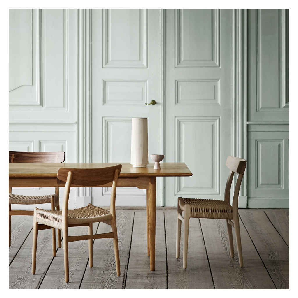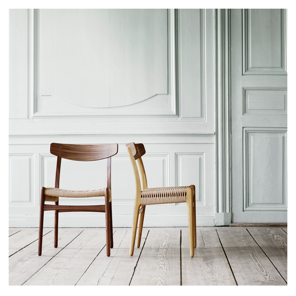 Out of production for 50 years and specially re-introduced for 2017, the oiled oak and walnut CH23 Side Chair with a natural paper cord seat was designed by Hans J. Wegner exclusively for Carl Hansen & Son. One of the first pieces Wegner designed exclusively for Carl Hansen & Son, the CH23 Side Chair in oiled oak and walnut is emblematic of Wenger's design style: straightforward, functional and timelessly beautiful. A demonstration of Wegner's insightful craftsmanship, this oiled oak and walnut CH23 Chair showcases several of his celebrated design details: the shape of the elegant cover caps on the top rail, the special double-woven natural paper cord seat and the curved shape of the rear legs, which ensures optimal stability. This CH23 Side Chair is rich in detail, yet retains its minimal and lightweight quality. With no armrests, the oiled oak and walnut CH23 Side Chair is ideal for fitting around the dining table and makes for a classic seating option in smaller rooms. Thanks to its ingenious design and organic contours, Hans. J Wegner's CH23 Side Chair offers comfort, stability and style, making a striking piece for any sophisticated interior. This re-released CH23 Side Chair presents a unique opportunity to own a true collector's item that is sure to be passed down through generations.