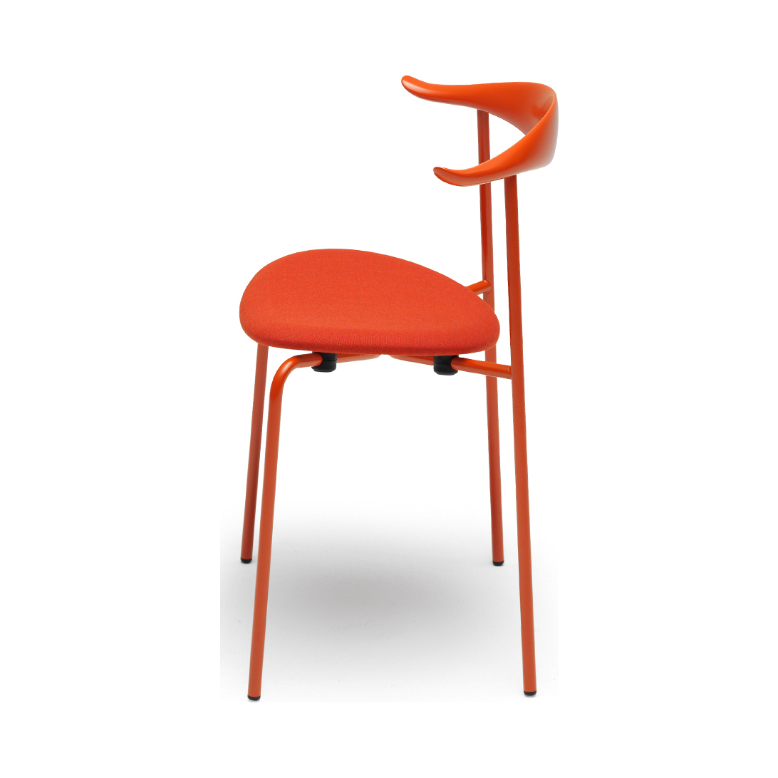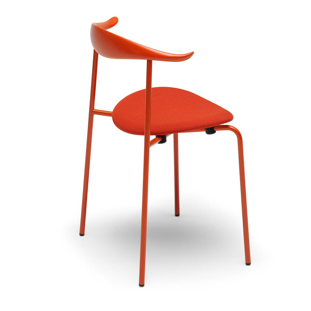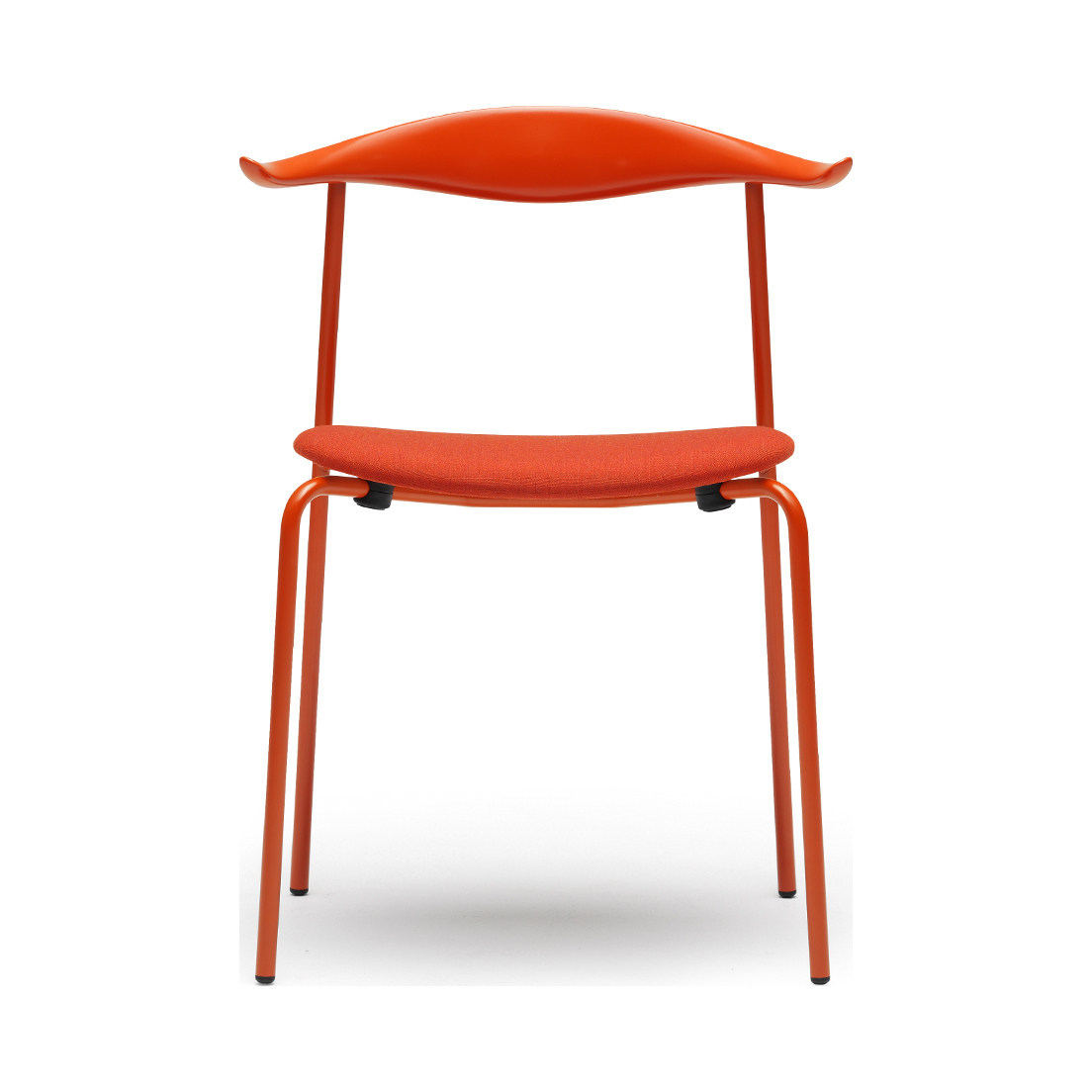 Expertly manufactured by master craftspeople at Carl Hansen & Son to celebrate Hans J. Wegner's centenary, this edition of the CH88. P Chair is a clean-lined, colourful design that until now, existed only as a prototype. Originally designed by Hans J. Wegner in 1955, the stackable CH88. P Chair is composed of orange-red Powder-Coated steel legs, with a steam-bent coloured beech backrest available in selected Carl Hansen & Son hues. The gently curved seat is upholstered in Kvadrat's Remix fabric: a rich 90% new wool blend with a solid weave. Allowing for freedom of movement while providing superior comfort, the CH88. P Chair is a lightweight curved form makes it an ideal option for living and dining spaces. Its backrest features gentle curvatures that become resting spaces for the arms, while its stackable form makes it ideal for apartments and houses alike. The CH88. P Chair in an orange powder-coated steel and coloured beech finish is an excellent example of iconic Danish designer Hans J. Wegner's constant striving towards organic simplicity in his work and his desire to create sculptural beauty, comfort and outstanding stability.