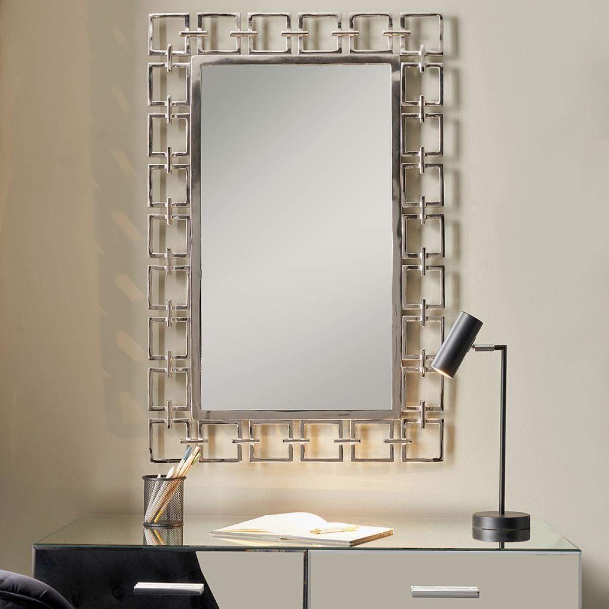 I love this chain link large rectangle mirror for its modern yet versatile design, making it a great statement piece for a variety of interiors. Its geometric frame can work beautifully in minimalist, contemporary, or even eclectic spaces, adding a touch of sophistication while visually enlarging a room. For practical styling, I recommend placing it above a console or sideboard in an entryway or living room, where it can reflect light and create a sense of space. Pairing it with sleek metallic accessories or monochrome colour schemes can enhance its clean lines, while its bold frame also works well as a standalone focal point. Overall, it's a smart choice for anyone wanting to inject a bit of modern edge into their décor.