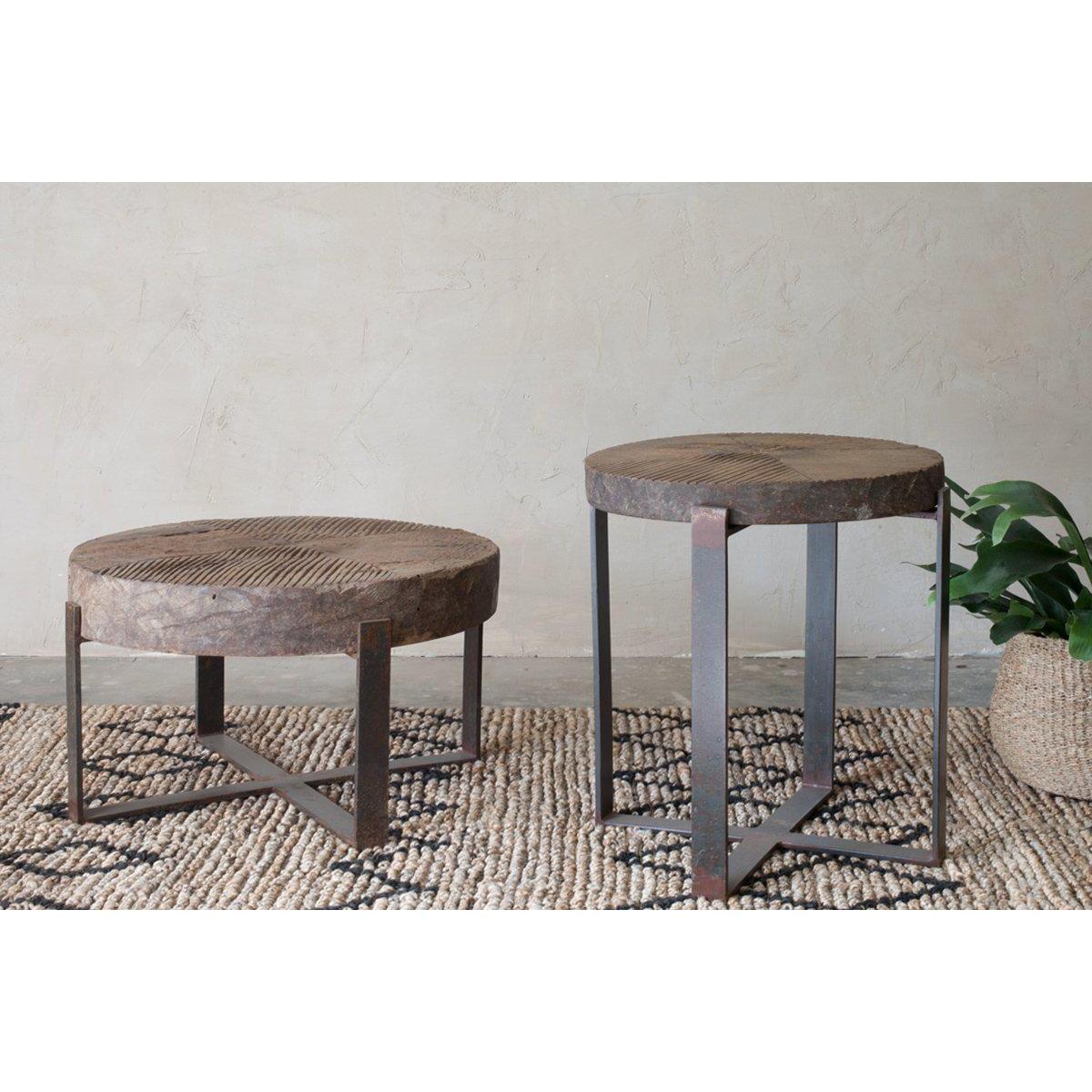 Our Chakala coffee tables are made from reclaimed wooden herb grinders, once a traditional feature of Indian everyday life. The chunky wood tabletop is rich with character and interest. The simple iron frame provides a stylish base.