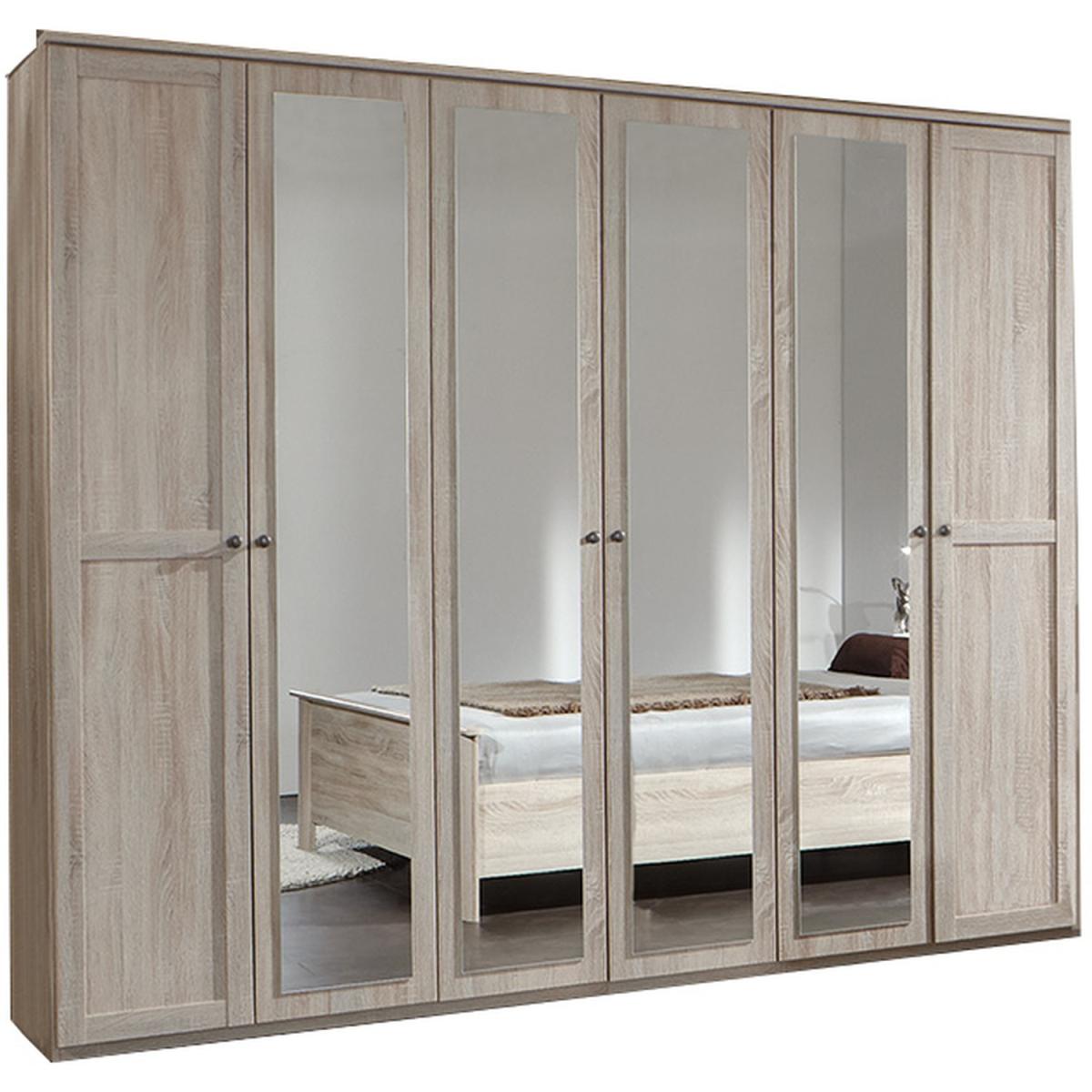 Chalet 6 Door 4 Mirror Oak Wardrobe - Oak