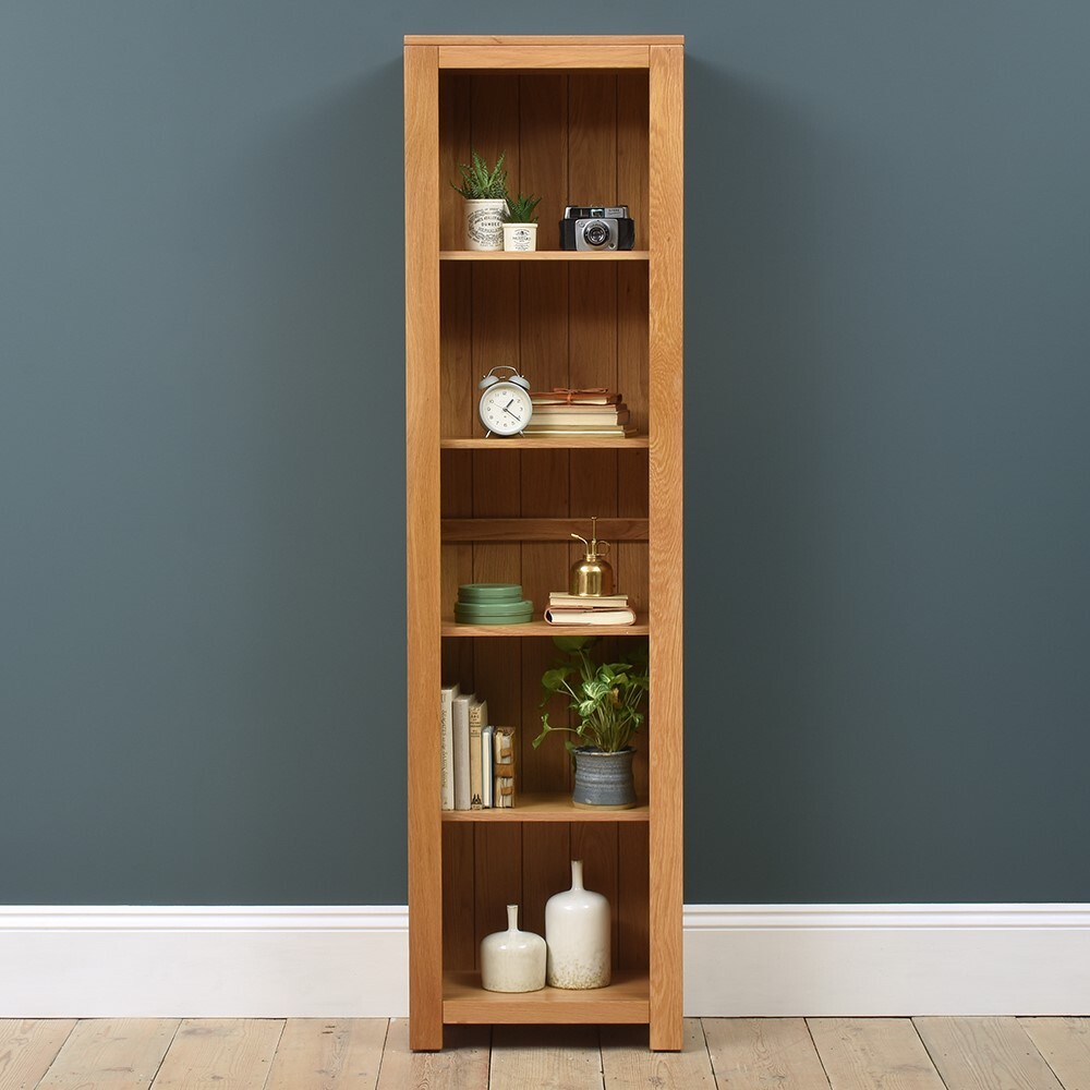A handy, slim-line design for popping into those awkward nooks and crannies, this tall bookcase includes five deep shelves offering a plethora of space for books, DVDs and knick-knacks. Team with other items in the Chalford Oak collection or stand it alone in any room for a little extra storage space.