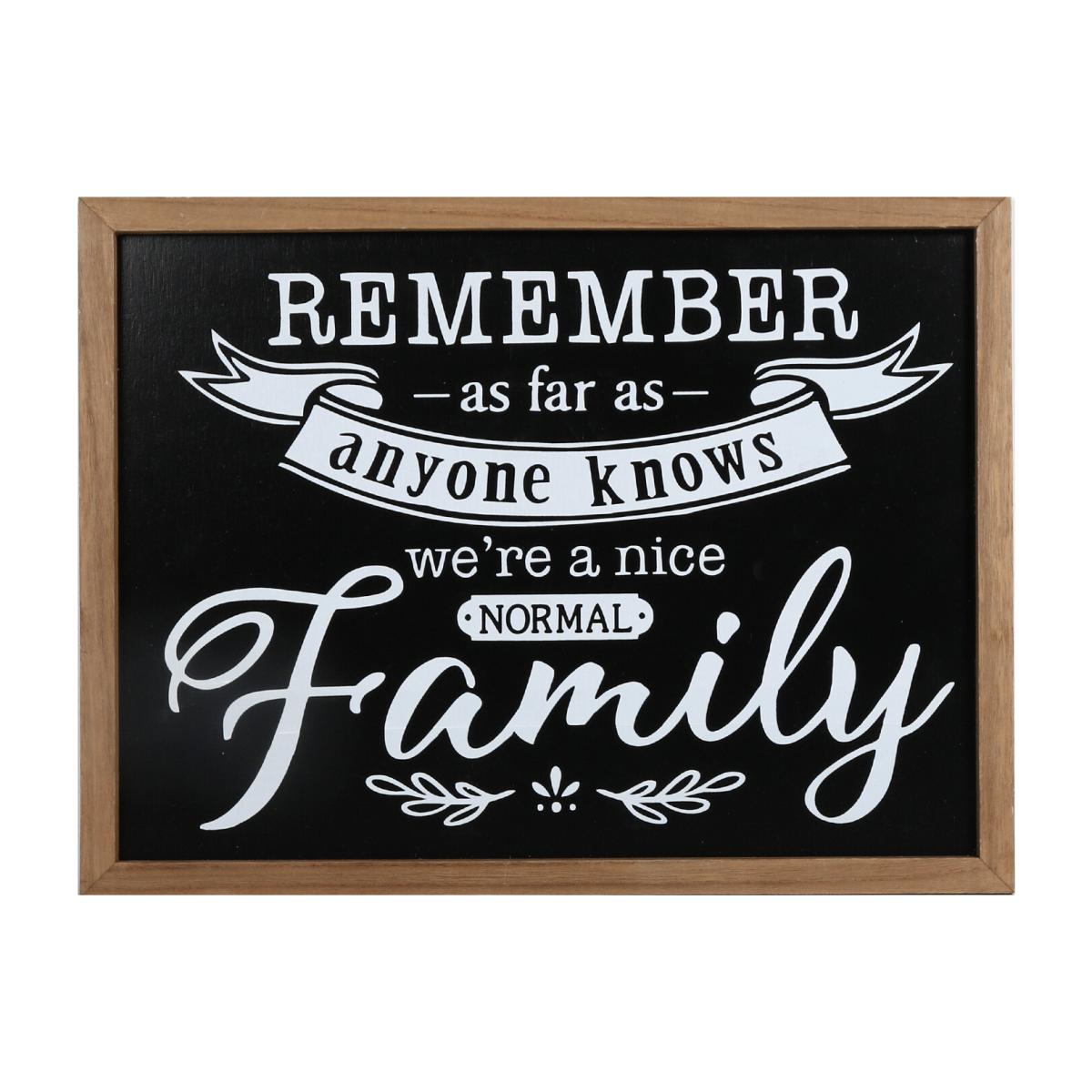 The Chalkboard Style Family Quote Sign is the perfect addition to your home. Quick and easy to hang with the included hooks, this sign is available in two designs: 'Remember, as far as anyone knows, we're a nice normal family' and 'We may not have it all together, but together we have it all.' Ideal for family areas such as the living room or kitchen, it's easy to coordinate with your decor, thanks to the classic wood frame and chalkboard design.
