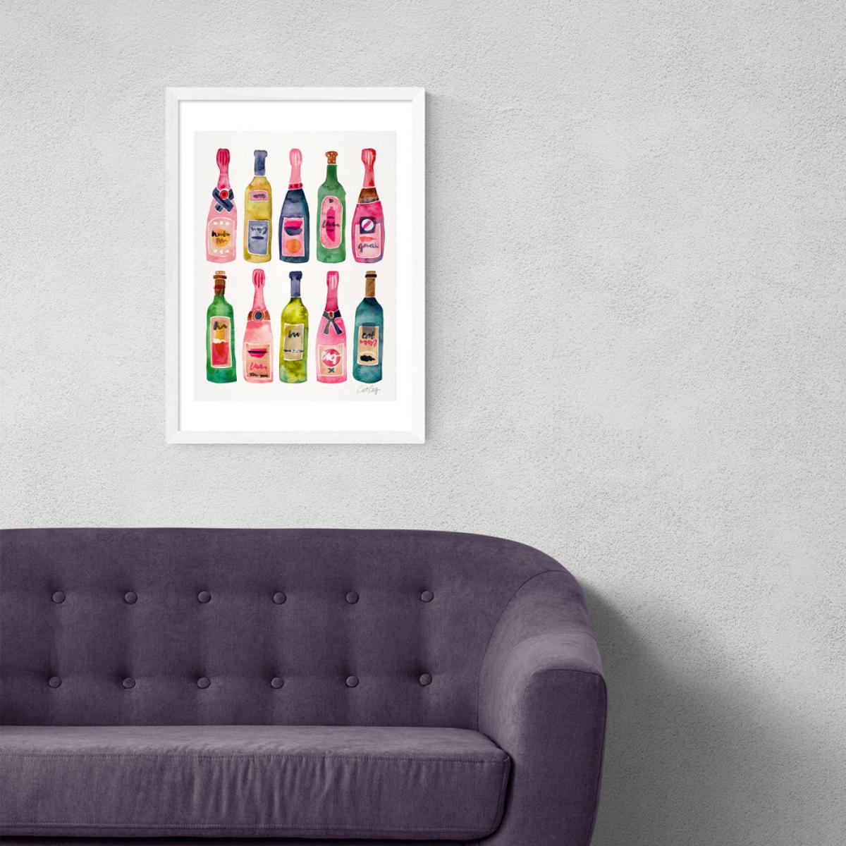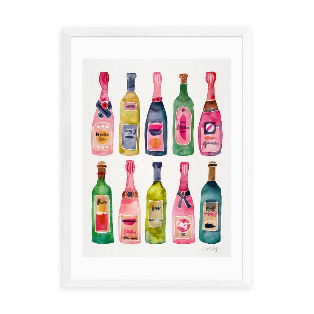 This artwork is hand crafted and made to order for you. Make your space pop with this charming champagne print by Cat Coquillette. Hang in your kitchen for a fun addition. Additional Information:W. View More. This artwork is hand crafted and made to order for you. Make your space pop with this charming champagne print by Cat Coquillette. Hang in your kitchen for a fun addition. Additional Information:. White Obeche Wood Frame. A3 Sized Print. Giclee printing process lasting up to 70 years from fading. 210gsm acid free archival paper with a digital white border. For every print sold a percentage of profit is donated to Cool Earth, a charity combating deforestation in the rainforest.