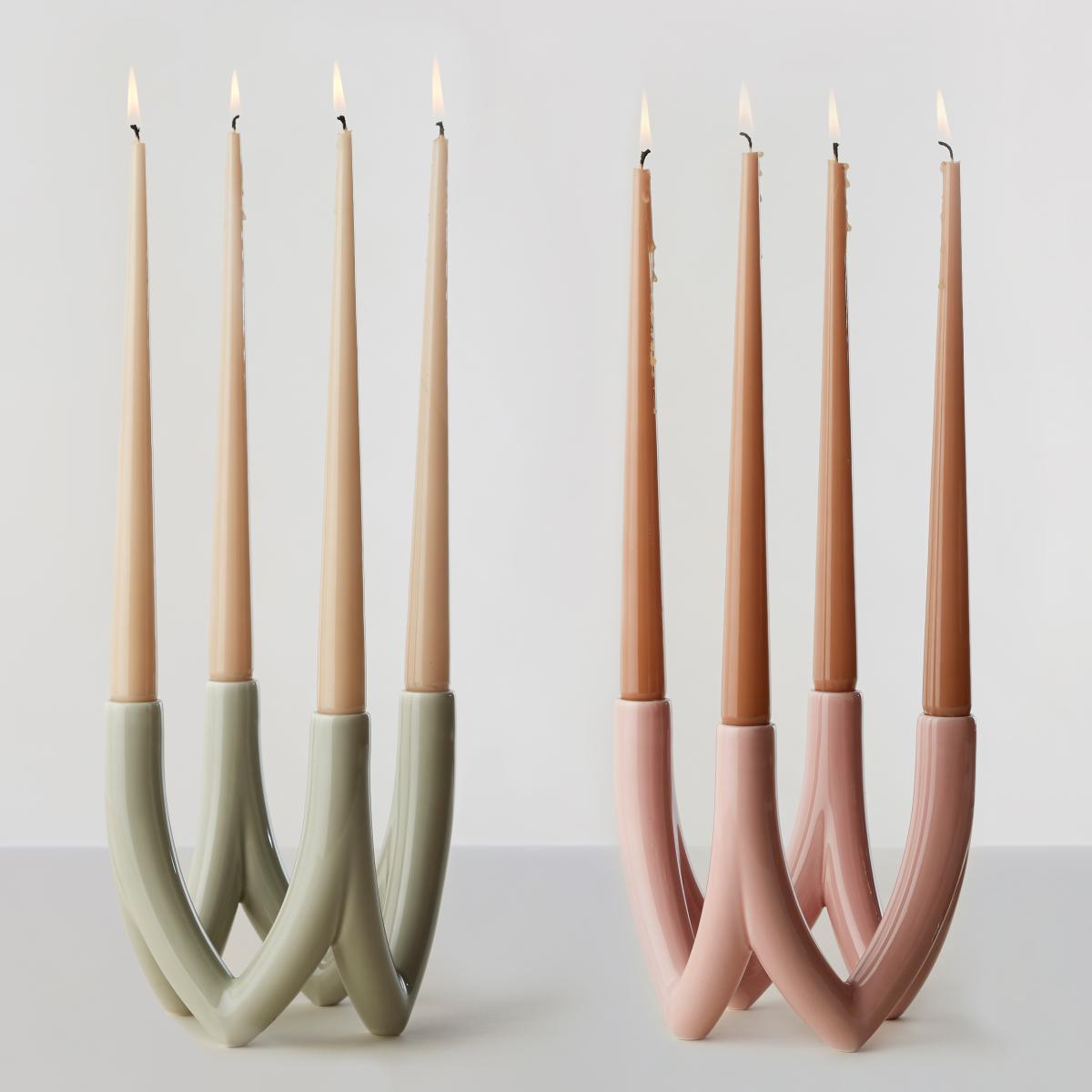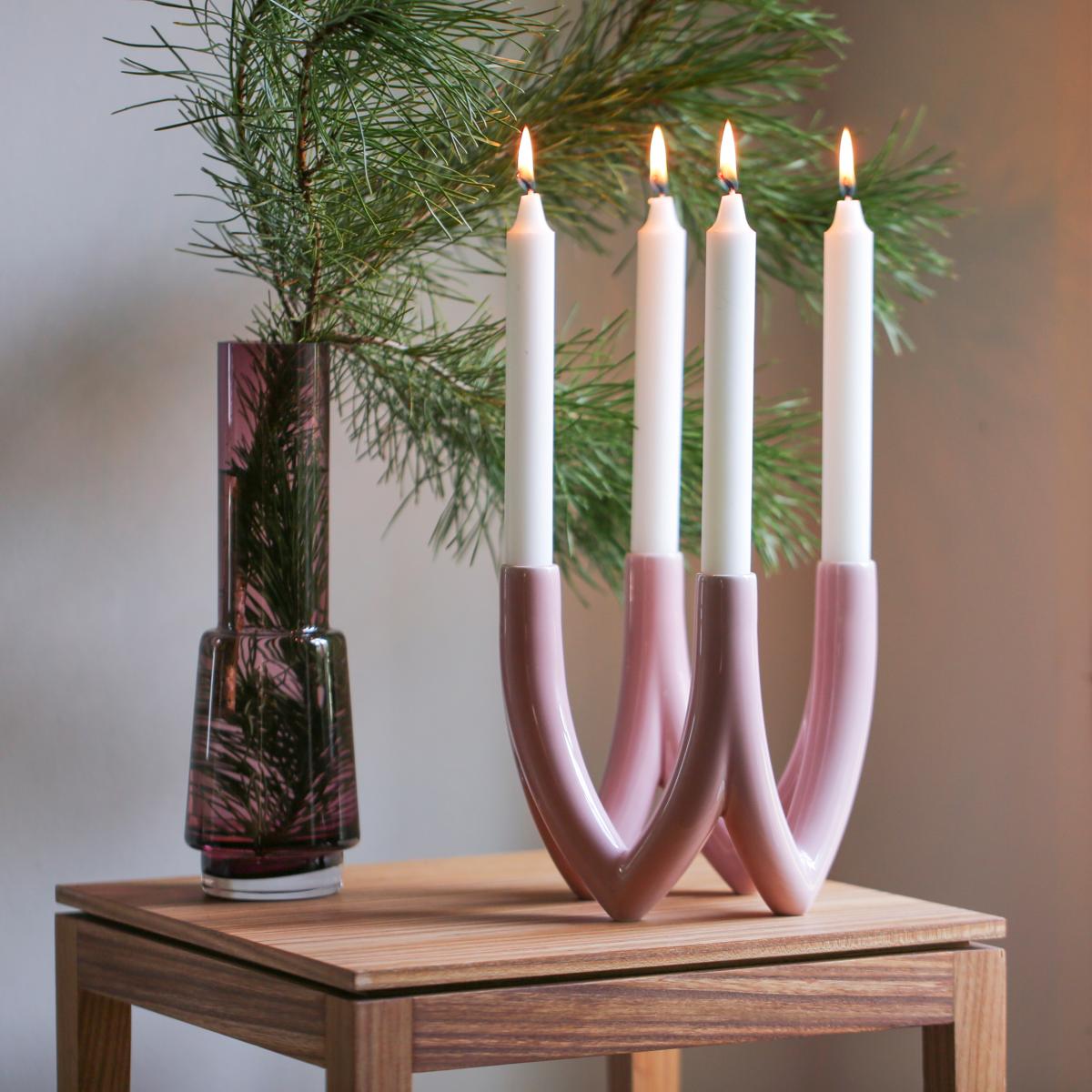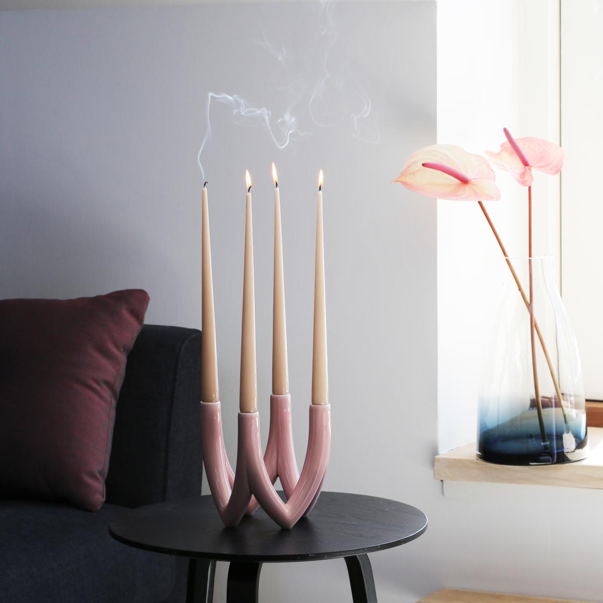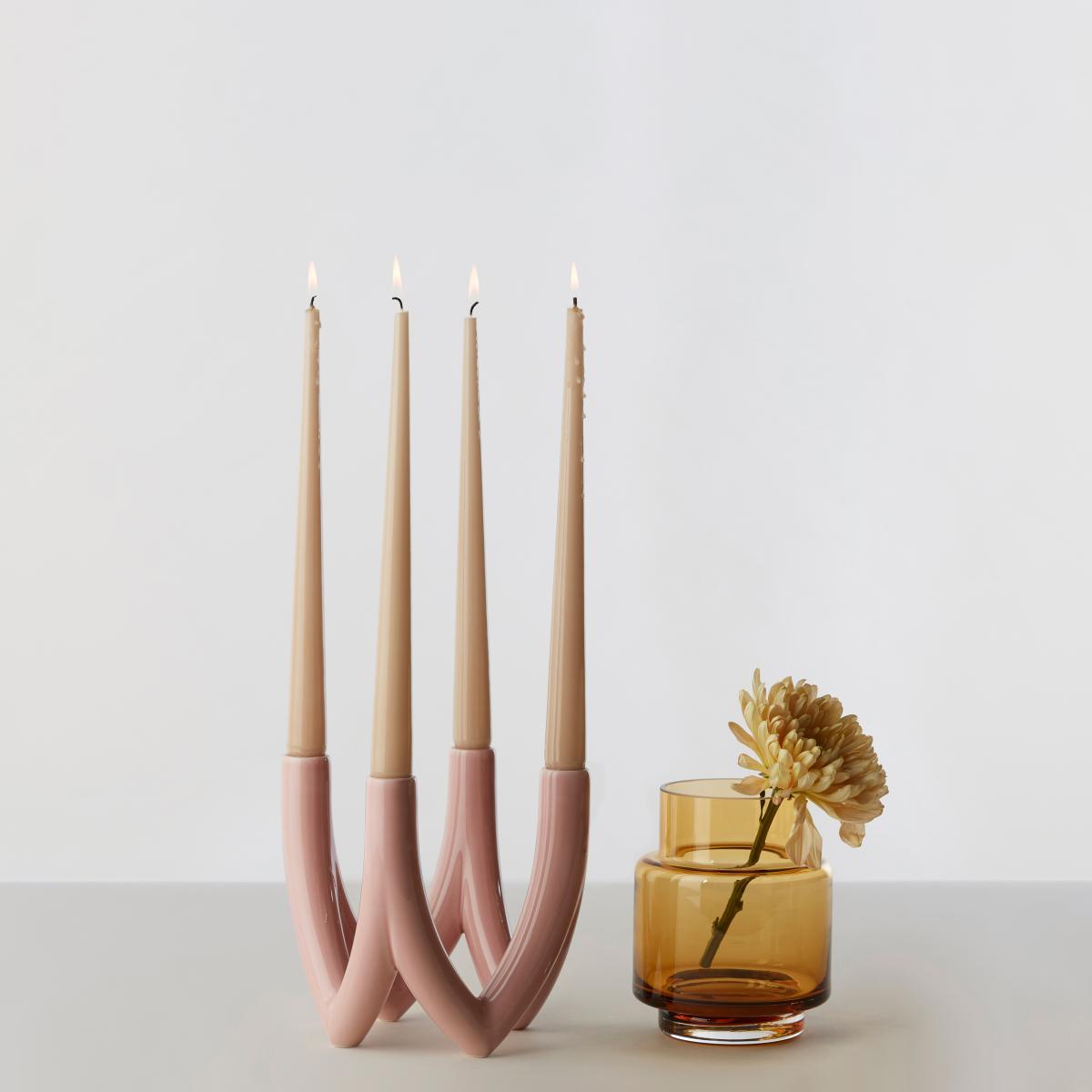Chandelier candlestick no. 56 from Ro Collection is a four-armed candlestick designed by Rebecca Uth. The candlestick is hand-cast in earthenware and covered with a glossy, semi-transparent glaze that beautifully emphasises its shape. The candlestick is produced in a small factory in Portugal, a country known for its long and well-preserved handicraft tradition.