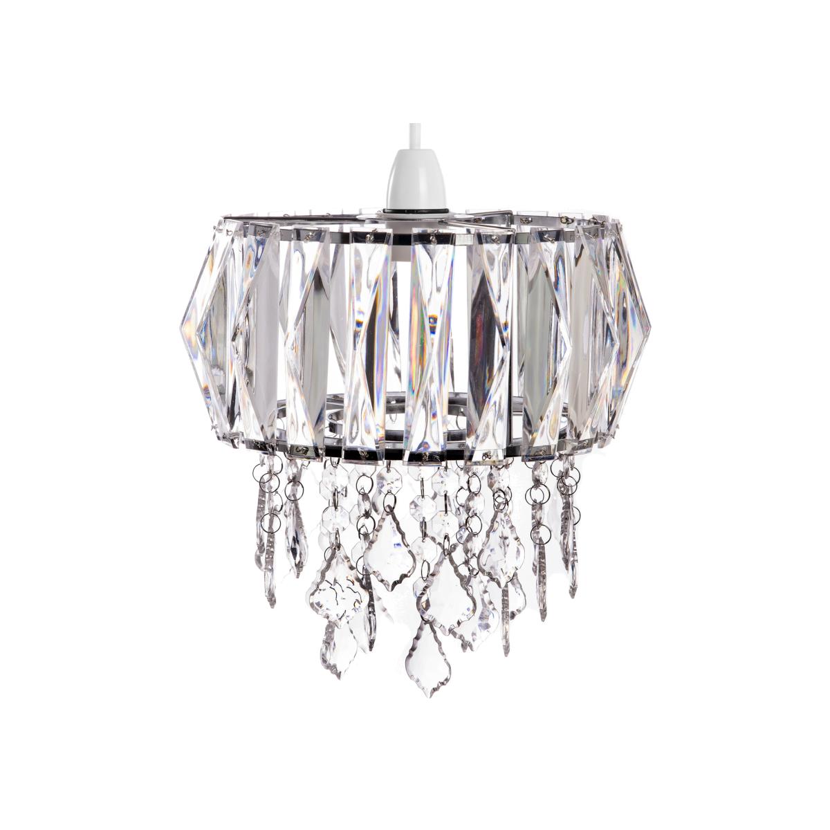 Sleek chrome frame with prismatic acrylic crystal strips and clear faceted acrylic crystal beads. This attractive lampshade add elegance and style to your living room, kitchen, bedroom, hallway, office etc. Being versatile and compatible in nature, it is easy to install with ceiling pendants. Use lamp holder and bulb of E27, E14 or B22, GLS max 60W & energy saving max 21w. Both lamp holder and bulb are not included. For E14 & B22, please use the size adaptor provided. Easy fit and installation with no wiring needed.
