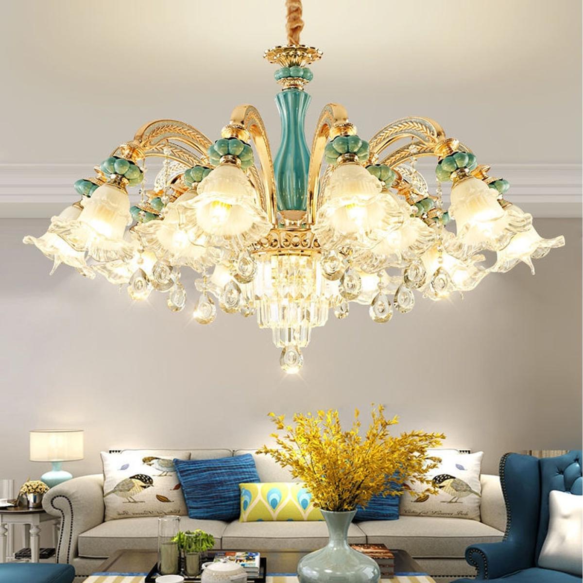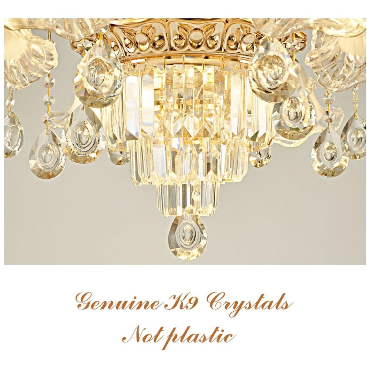 2 Arms Wall Light. Style:Crystal, modern/contemporary. Number of lights: E14 x 2. Finish: electroplated. Materials: K9 Crystal, Ceramic, Zinc Alloy. Dimmable with E14 Dimmable Bulbs. Lighting direction: ambient light. Power:Max 40W x 2. Voltage: 110-240V. Net weight: 2.2 kg. Width: 40cm. Height: 35 cm. Depth: 30cm6 Arms. Style:Crystal, modern/contemporary Suggested space size: up to 20 sq.m. Number of lights: E14 x 6. Finish: electroplated. Materials: K9 Crystal, Ceramic, Zinc Alloy. Dimmable with E14 Dimmable Bulbs. Lighting direction: ambient light. Power:Max 40W x 6 Voltage: 110-240V. Net weight: 8 kg. Width: 70 cm. Body Height: 65 cm. Chain Length: 50 cm (Adjustable)10 Arms. Style:Crystal, modern/contemporary Suggested space size: up to 30 sq.m. Number of lights: E14 x 10. Finish: electroplated. Materials: K9 Crystal, Ceramic, Zinc Alloy. Dimmable with E14 Dimmable Bulbs. Lighting direction: ambient light. Power:Max 40W x 10 Voltage: 110-240V. Net weight: 10 kg. Width: 90 cm. Body Height: 65 cm. Chain Length: 50 cm (Adjustable)