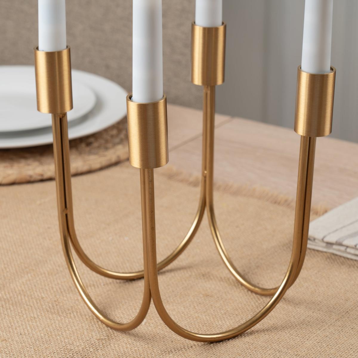 * Classic yet modern design* Holds 4 taper candles (not included) * Available in a choice of colours* Great table centrepiece This chandelier style candlestick holder is the perfect modern yet classic centrepiece for your table. Holding 4 taper candles, it can be displayed alone or with artificial foliage for all the seasons, making it a versatile décor piece. Available in a choice of colours, it will blend perfectly with modern or minimalist interiors, or act as the base for more intricate displays.