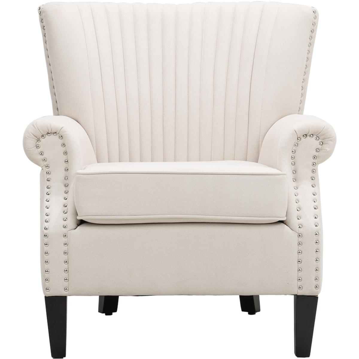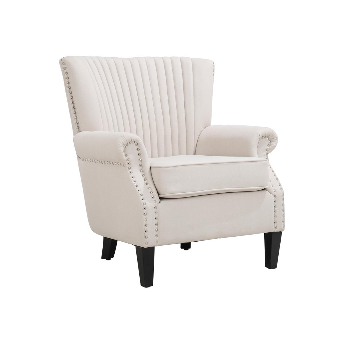 This Livingandhome tufted armchair has an elegant and delicate waterfall back with smooth upholstery that offers a rich, luxury appeal, making the piece equally perfect in living room, dining room, home office and even corner. It also features a soft and durable skin-friendly fabric cover, the natural wood frame makes a perfect match with the high-density foam, and the rubber wood legs with a black finish ensure are for added stability and luxury style. Also, it boasts a curved back and neat armrests, which can hold you like being embraced in the arms, and keep you relaxing in a high level of comfort.