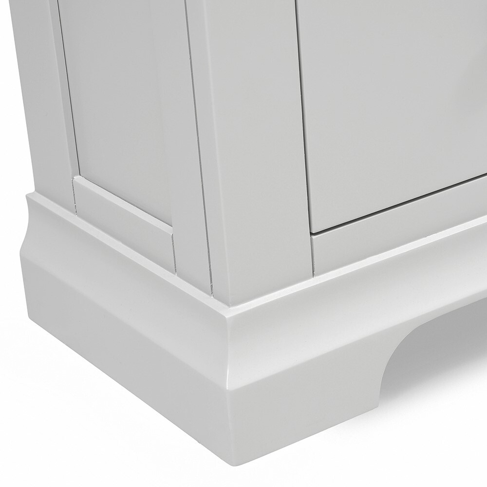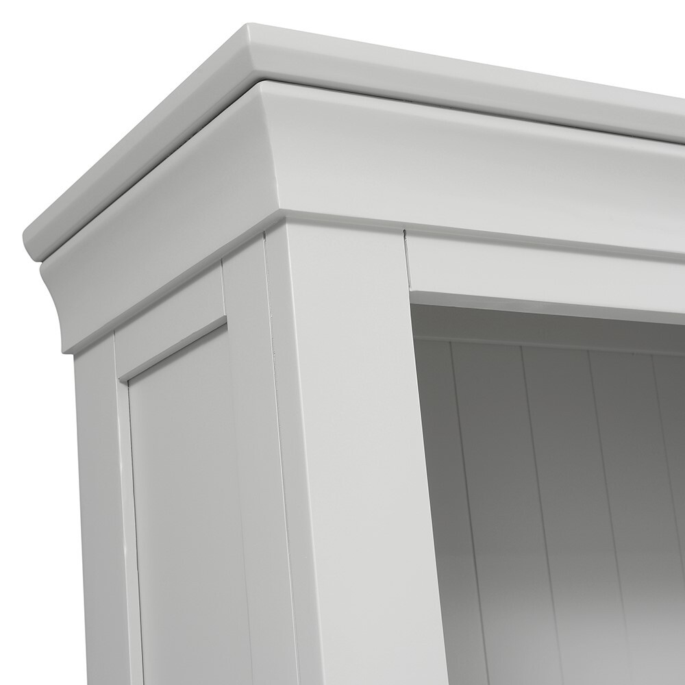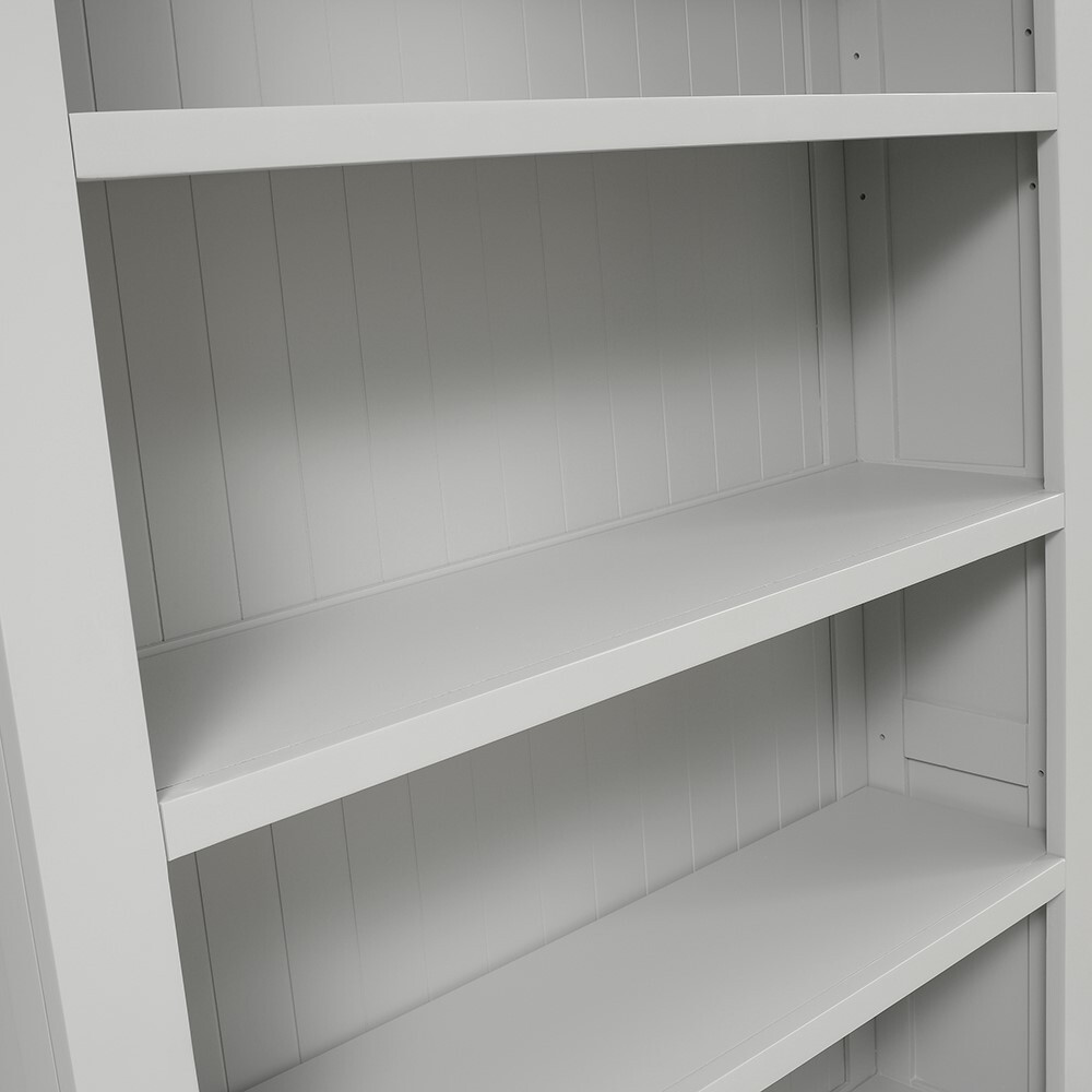 For the alcoves beside your fireplace, or as a little extra storage in the dining room or study, our Chantilly Pebble Grey Large Bookcase boasts an abundance of storage space. With four roomy shelves for cookery books, ornaments or photographs, its two handy bottom drawers can be used for stowing away those items you always seem to misplace! Painted in a beautiful soft grey so it complements your existing decor scheme, why not pair with other items in our Chantilly Pebble Grey Living collection for a modern country-inspired home?