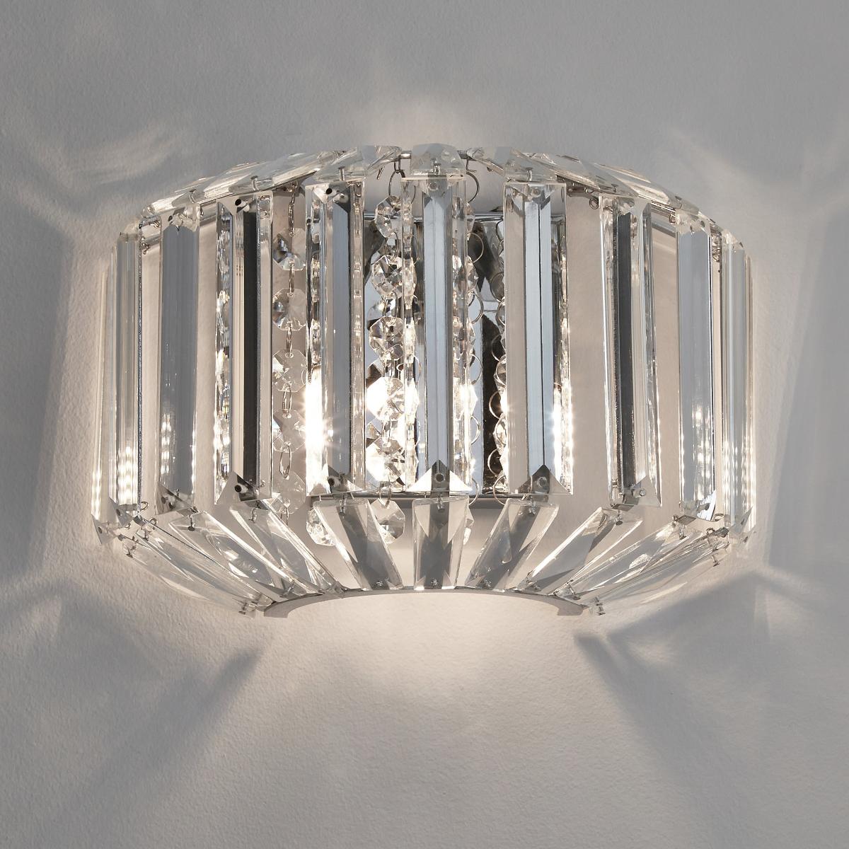 Add a luxurious touch to your home with our Chantilly Crystal Wall Light, made with chrome finish and a clear crystal glass shade. It's compatible with a dimmer switch so you can set that perfect glow in the evening. What's not to love?.