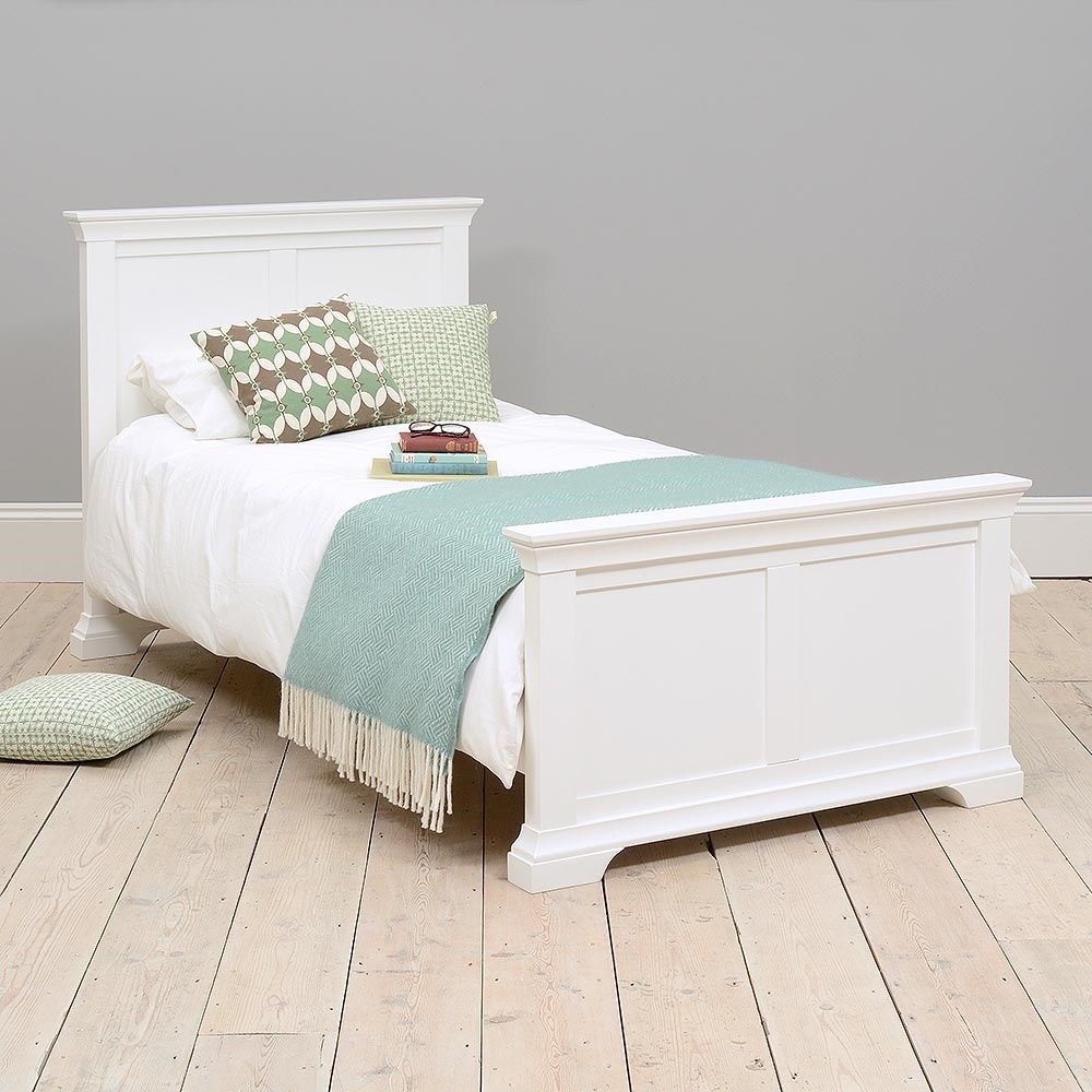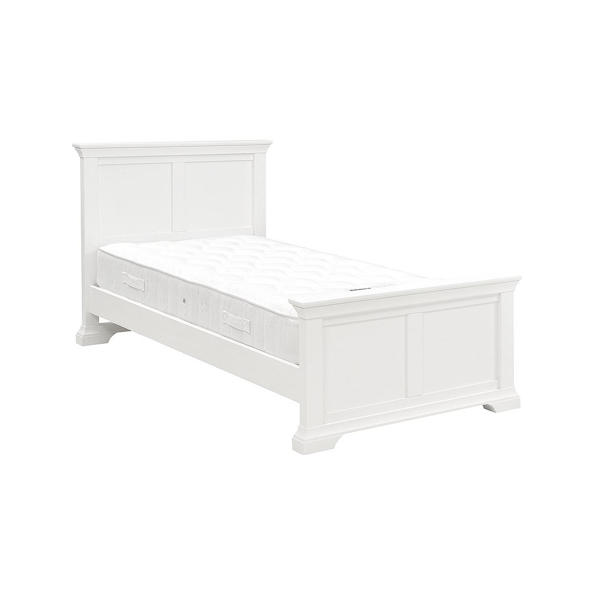 Ideal for a guest room, this stunning single bed will give any space a lift with its soft white paint finish. Sturdily built, it has strong slats so will cope with trampolining toddlers and pillow-fighting siblings and offers superb support for your mattress. A high, solid headboard with an attractive cornice gives it a touch of elegance and it will blend beautifully with any décor, be it traditional or contemporary.\n