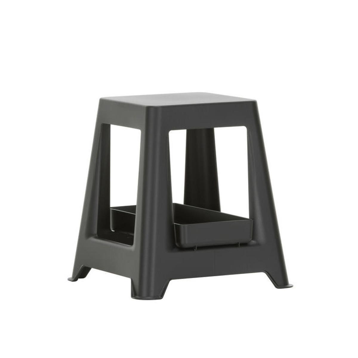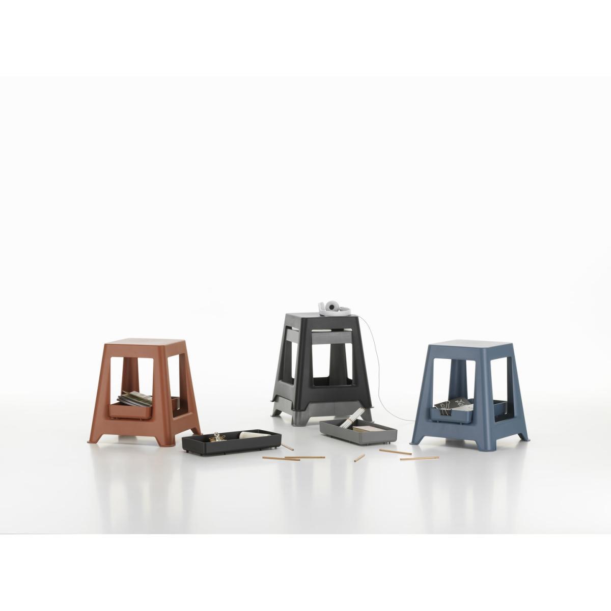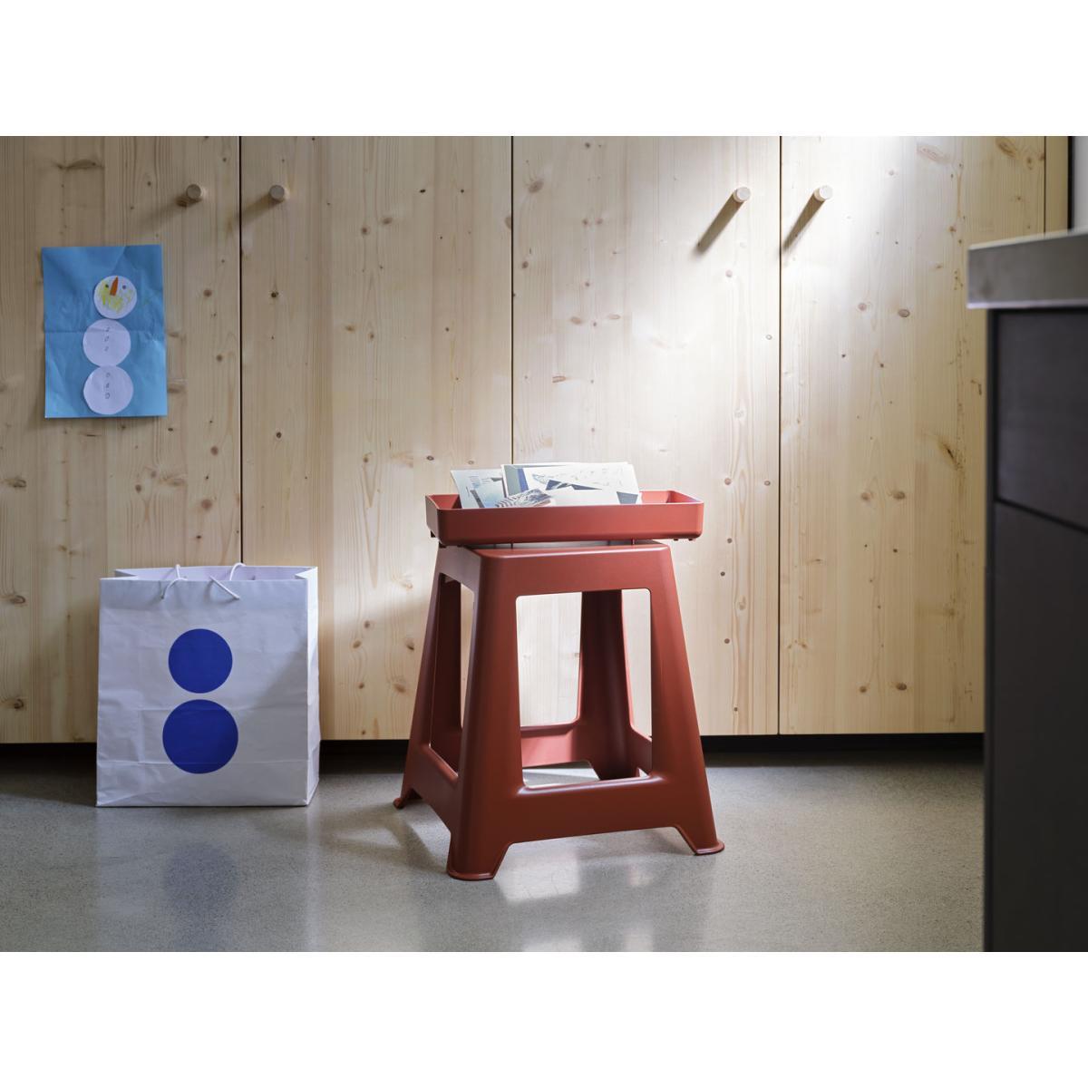Designed by Konstantin Grcic, Chap looks familiar at first glance: its affinity with small four-legged stools or side tables is immediately apparent. The quality of this creation derives from its generic appearance and universal applications: light, stackable and robust, it isn’t limited to a specific function. Chap is particularly versatile: at home, it serves as a practical footrest, side table or seat for additional guests. And because it's lightweight and stackable, Chap can be taken to workshops, meetings, and other types of office get-togethers, and put away in the blink of an eye. The stool can be accessorised by placing a high-rimmed storage tray on its base. One or more Chap Trays can be placed and stacked under the stool seat to store the user's phone, cables, papers and other utensils. The Chap stool as well as the Chap Tray are made of plastic from recycled industrial waste and are themselves 100% recyclable.