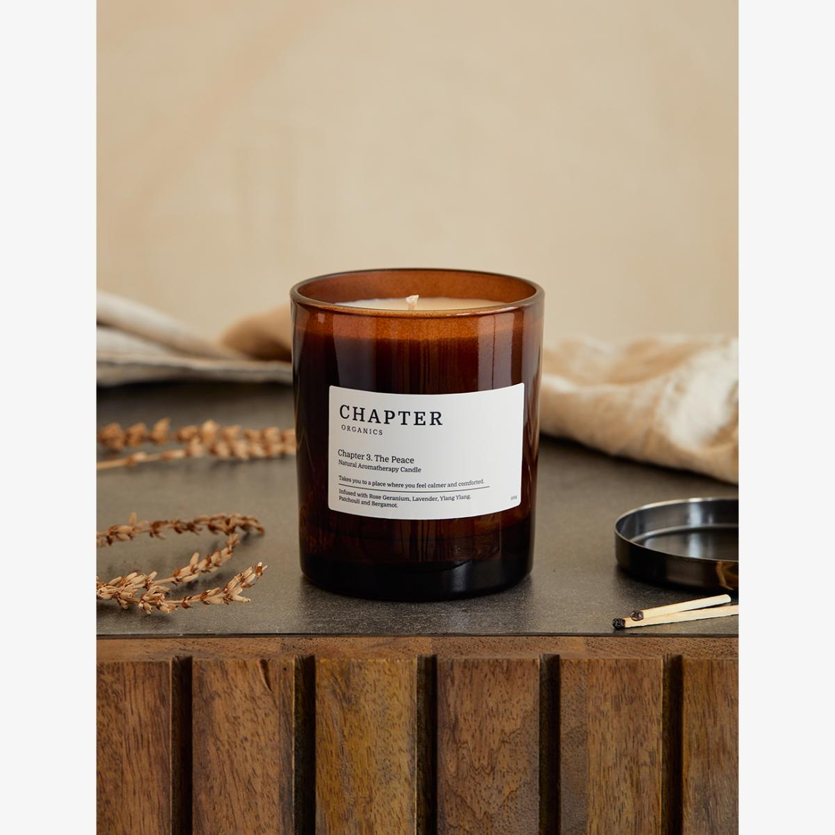 We're delighted to introduce Chapter Organics to our collection! Chapter's products are a favourite of the Rose & Grey team, and are designed and made in Yorkshire to support busy modern lives. The Peace candle has a restful blend of lavender, patchouli, ylang ylang and bergamot essential oils. It's expertly blended to sooth the mind, ease stress and tension, and to help prepare your body for relaxation and sleep. This fragrance is also available in a linen mist. Scent: Floral, Herbal, Rose
