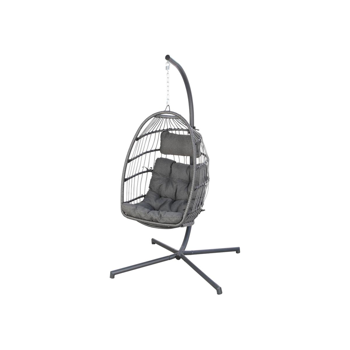 We present to you the garden Chara egg hanging chair, the ideal addition to any outdoor area. This hanging egg chair is fashionable and cosy thanks to its black steel frame and grey cushion. Polyester rope and PE rattan are combined to create this outdoor hanging chair, which is supported by a strong steel frame. While not in use, the hanging egg chair may be conveniently stored thanks to its foldable construction. Both comfort and aesthetics were taken into consideration when creating the Chara hanging chair. The seat is 190x66cm in dimension. The hanging garden chair is a need for anyone wishing to furnish a comfortable outdoor area because it is both fashionable and practical. The Chara hanging chair also includes a 10-cm thick cushion for added comfort and pleasure.
