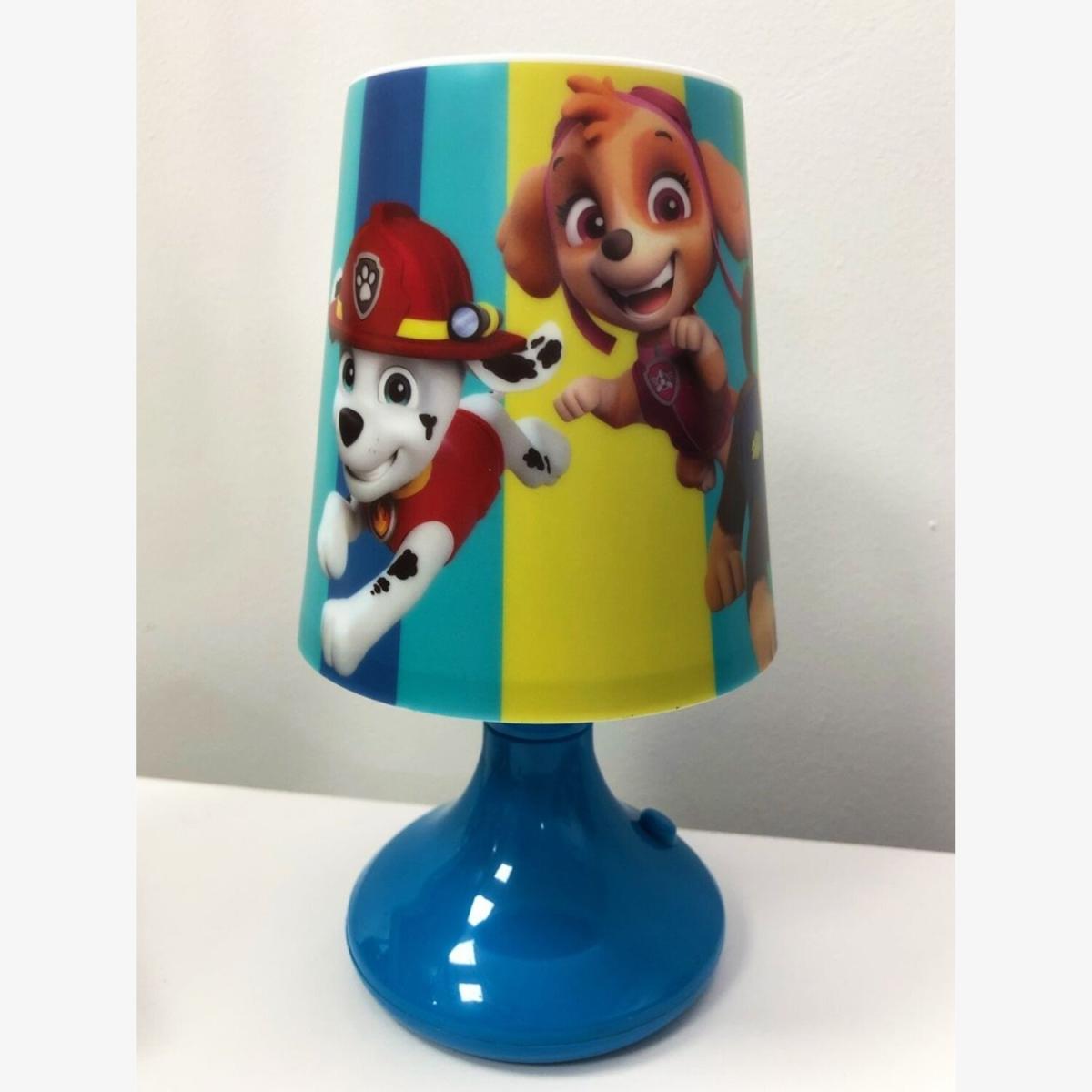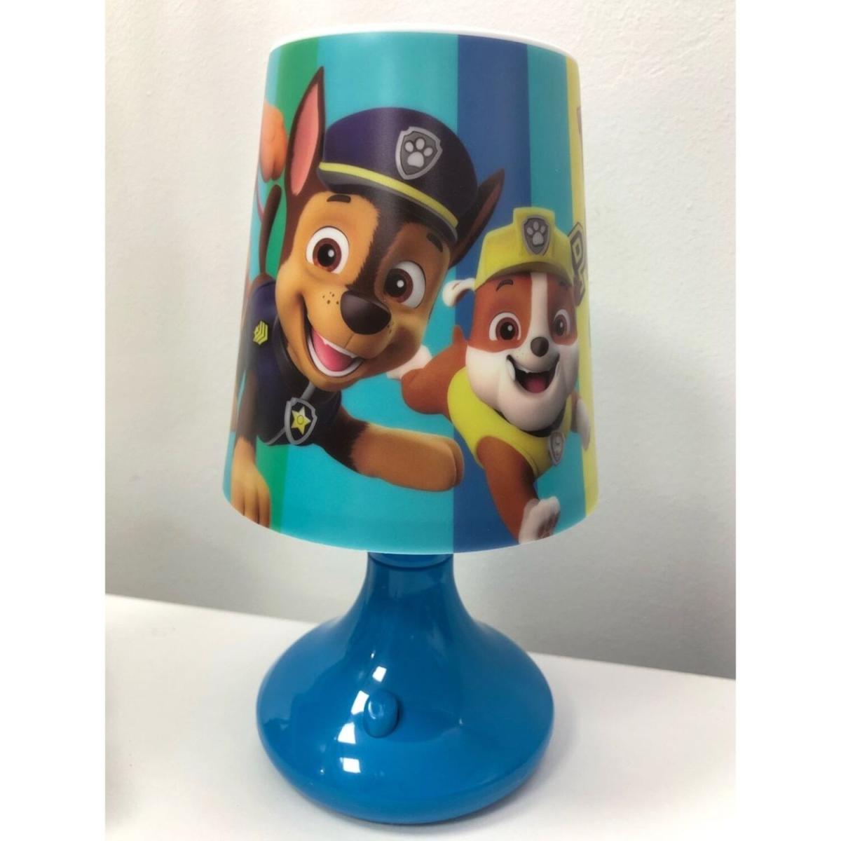Add the ideal finishing touch to your Paw Patrol themed bedroom with this fantastic Paw Patrol Table Lamp. The lamp uses warm LED light and is very safe for little ones to use with all the components fully enclosed to stop prying fingers. The battery operated lamp is fully portable and is the perfect size for desks, shelves and bedside tables. The design features a great image of Chase, Marshall, Rubble and Skye on a blue and yellow background with a blue base and is perfect for any little Paw Patrol fans.