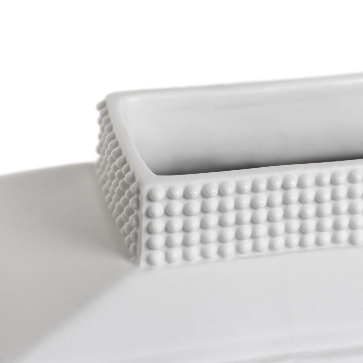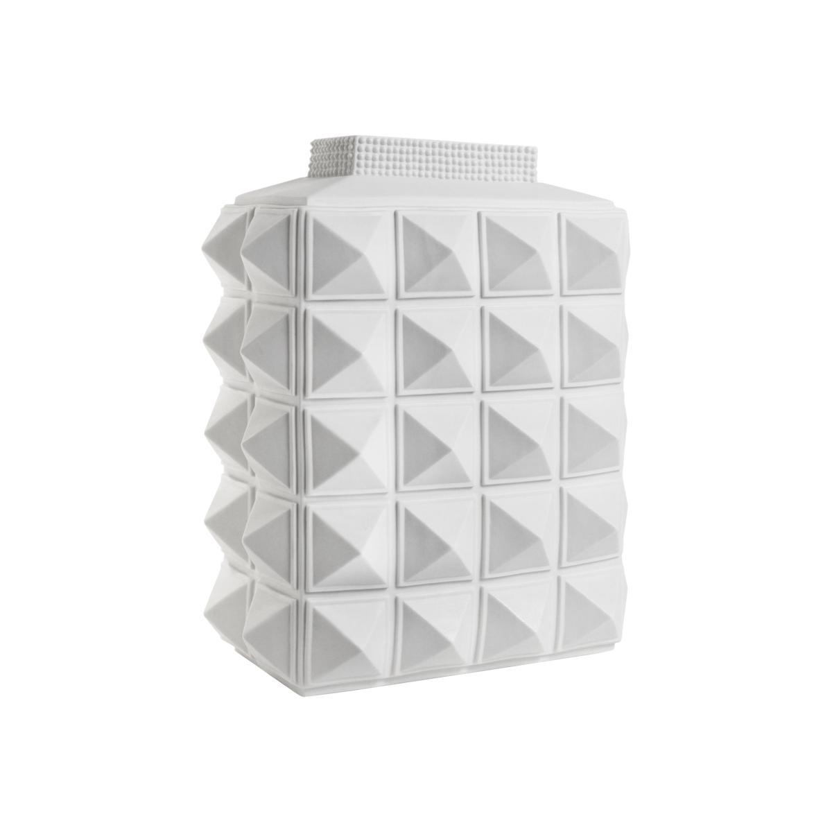 Tough glamour has never looked so good. With sharp lines and a graphic silhouette, this porcelain studded vase is given added dimension with its unglazed exterior. It's the perfect size for an entryway console or as a centerpiece at a glam dinner party. Our Charade Collection features glamorous, painstakingly hand-carved details cast in the highest quality matte porcelain. Each piece starts its journey in our Soho pottery studio where Jonathan and his team hand-sculpt the original model in clay. The prototype is then sent to our workshop in Peru where skilled artisans produce each piece in high-fired stoneware.