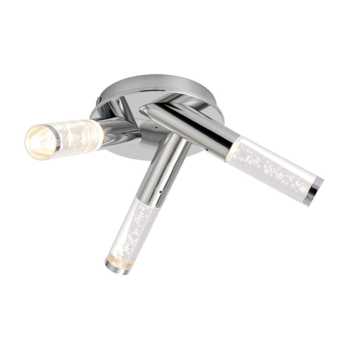 A 3 Light IP44 flush bathroom ceiling light. Each arm has a clear acrylic shade with a fun bubble effect. Colour: Chrome. Lamp Holder Type: COB. Bulb Type: LED. Maximum Bulb Wattage: 3. Bulb Included: Yes. Number of Bulbs: 3.