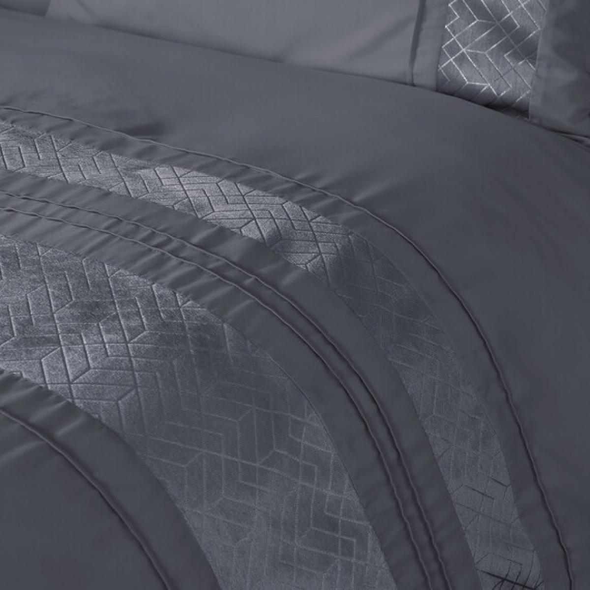 Simple and sophisticated, this Charcoal Geo Velvet Stripe Duvet Cover and Pillowcase Set will add a luxurious element to any bedroom. With an understated geometric velvet strip, this lavish duvet set will effortlessly match with a variety of bedroom decors.