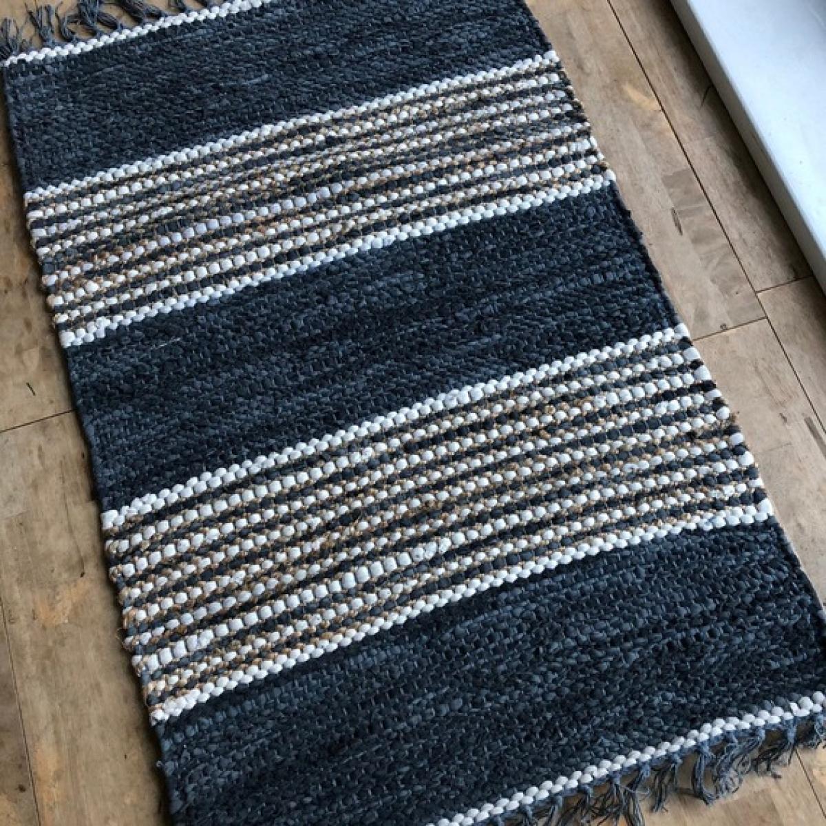 Charcoal Grey / Blue Leather & Jute Rug handcrafted product is made using natural fibres & dyes that creates unique variations from rug to rug making each one of the kind.