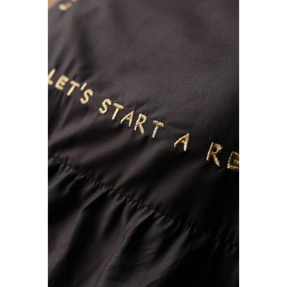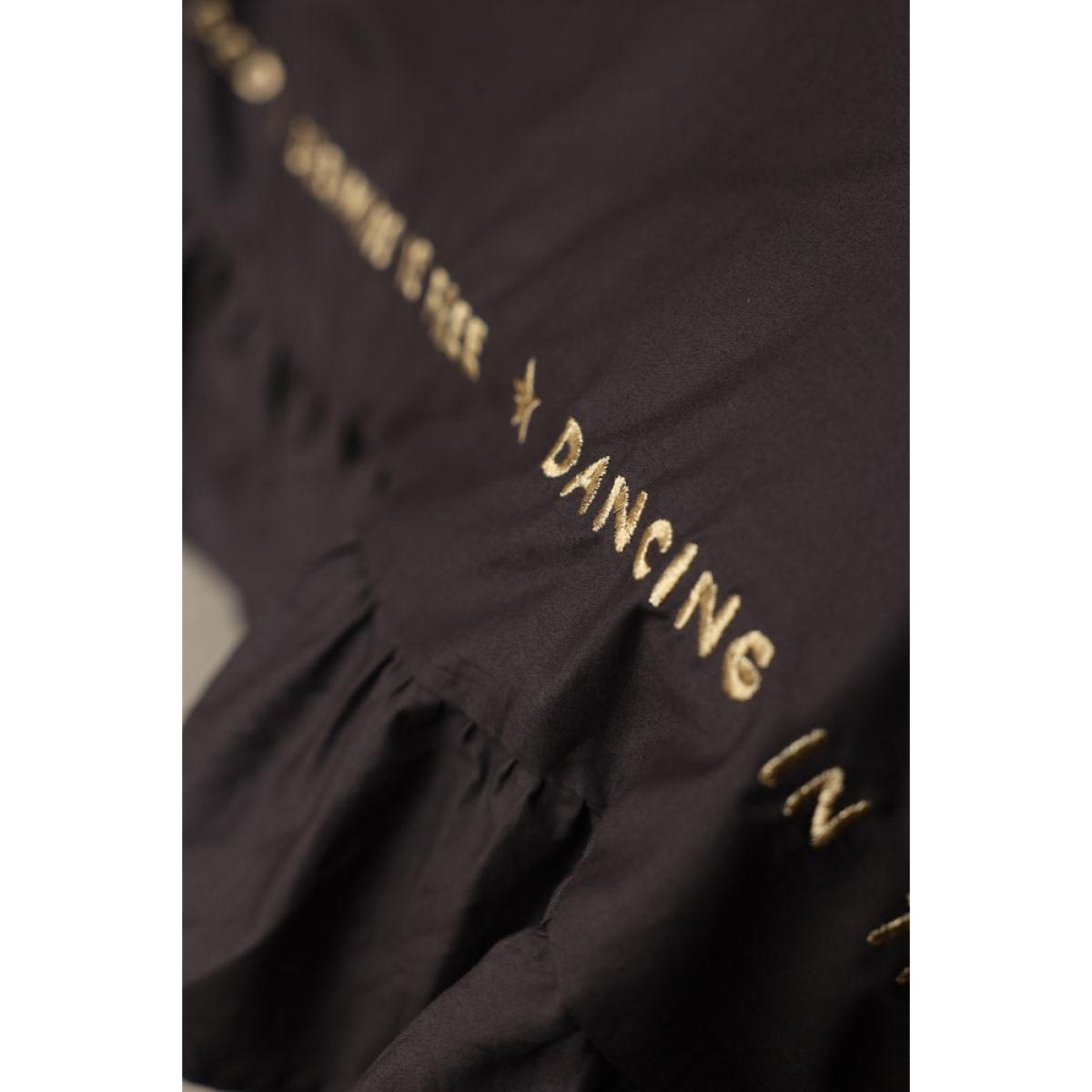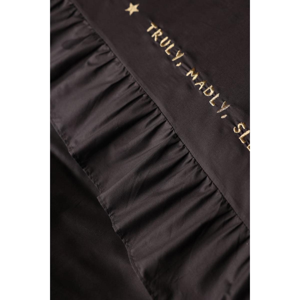 <!--td --> If you’re ready to shake things up in the bedroom department, we have just the thing. Black bed linen can create a dramatic and sophisticated look in the boudoir, especially when paired with lighter-coloured pillows or throws to create contrast and add accents of colour. If you’re feeling grown up, go for white, cream, grey, or pastel hues. If your inner Cindy Lauper (circa 1980) is in charge, then anything goes – go crazy with that colour palette! The 200-thread count cotton lends a quality feel that’s a pleasure to sleep in, while the oversized frilled pillowcases add a feeling of abundance and luxury. What we love most about this bedding, however, are the pithy little statements (‘Dreaming is free’ or, more saucily, ‘This is where the magic happens.’) They add a real sense of fun to this cotton bed linen set that can be echoed in the styling of the rest of the room - introduce metallic elements such as gold, silver, or bronze in the form of lamps or photo frames, or think prints with geometric patterns, florals, or subtle stripes. Finish with a velvet throw to add the ultimate in boudoir chic and you have a space with unrivalled va-va-voom. Now all you need to do is lie back and enjoy... - Charcoal Grey Mega Frill Duvet Cover and Pillowcase Set- Available in single, double, king and super king - Available in black and white Plain on reverse 200-thread count - Gold embroidered sleep slogans - Oversize frill-edge oxford pillowcases