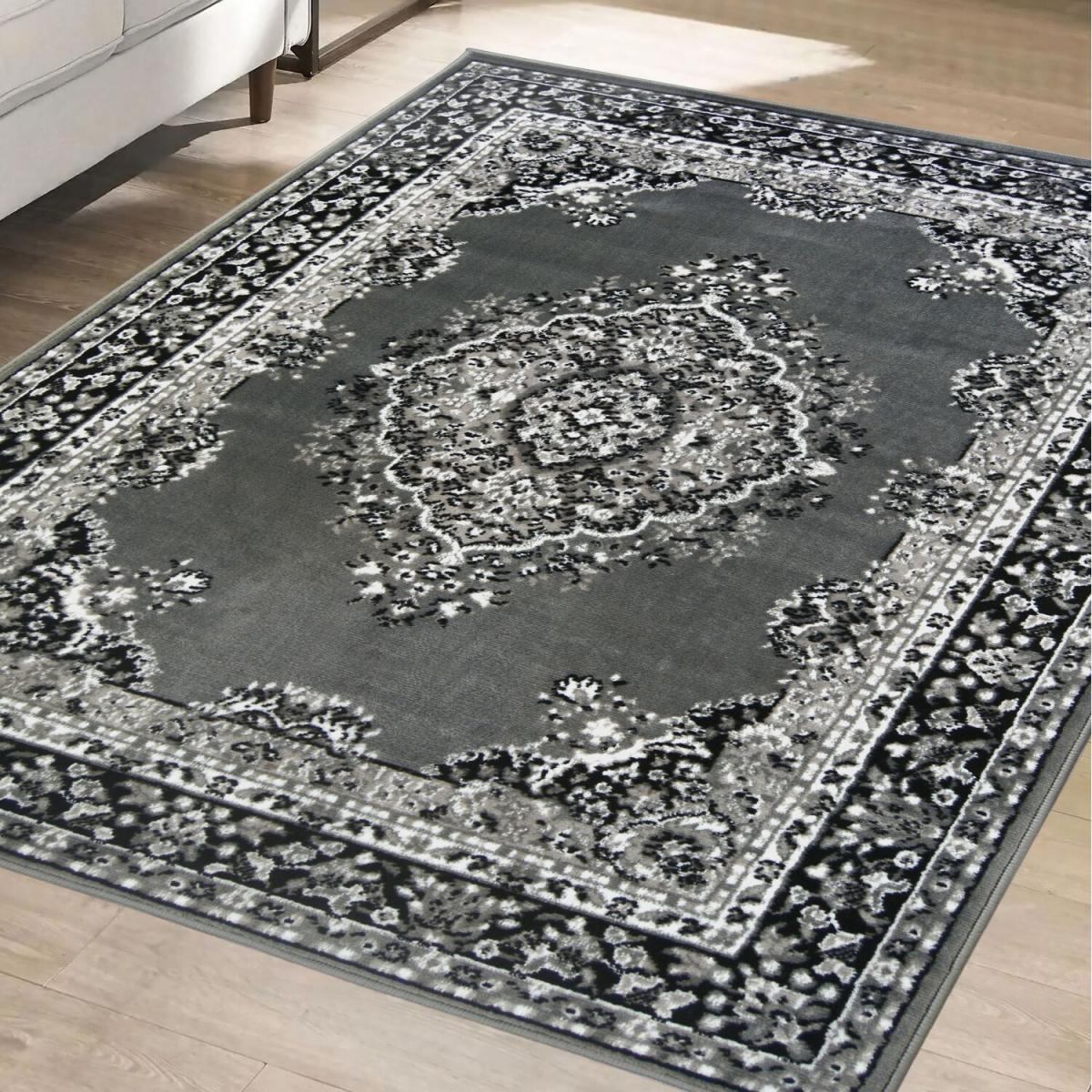 Charcoal Grey Traditional Medallion Area Rugs - Islay - Grey