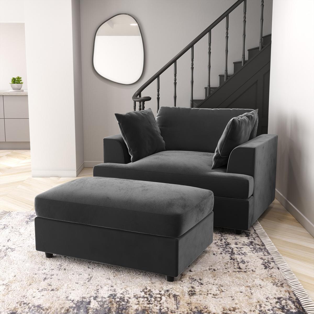The August footstool is the ideal place to put your feet up after a long day and is the perfect match for our August loveseat and sofa. The charcoal grey velvet is a great addition to any living room.