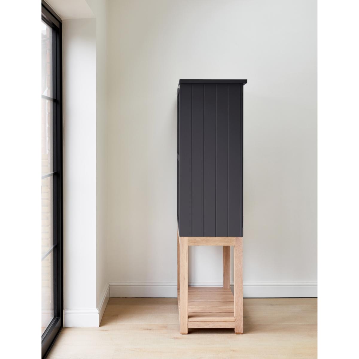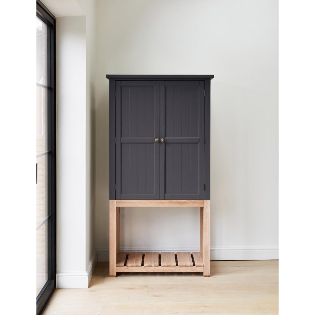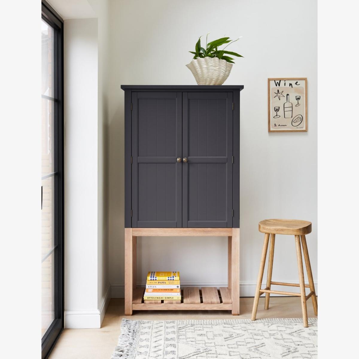 Maximise storage space and minimise clutter with our stand-alone Charcoal Wooden Kitchen Pantry Cabinet. This beautiful larder cabinet has removable shelves, two doors and an open storage shelf to suit all your kitchen needs. Our freestanding pantry cabinet offers a contemporary twist on the classic farmhouse interior style with plenty of storage space for all your favourite dinner sets, such as the Pearl Stoneware Collection and the Scalloped Edge Tableware Set. It's the perfect addition to any kitchen interior, bringing style and functionality to your home. Pair this pantry cabinet with our matching console table.