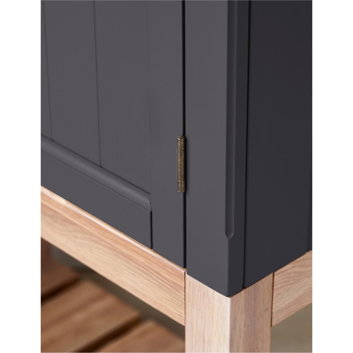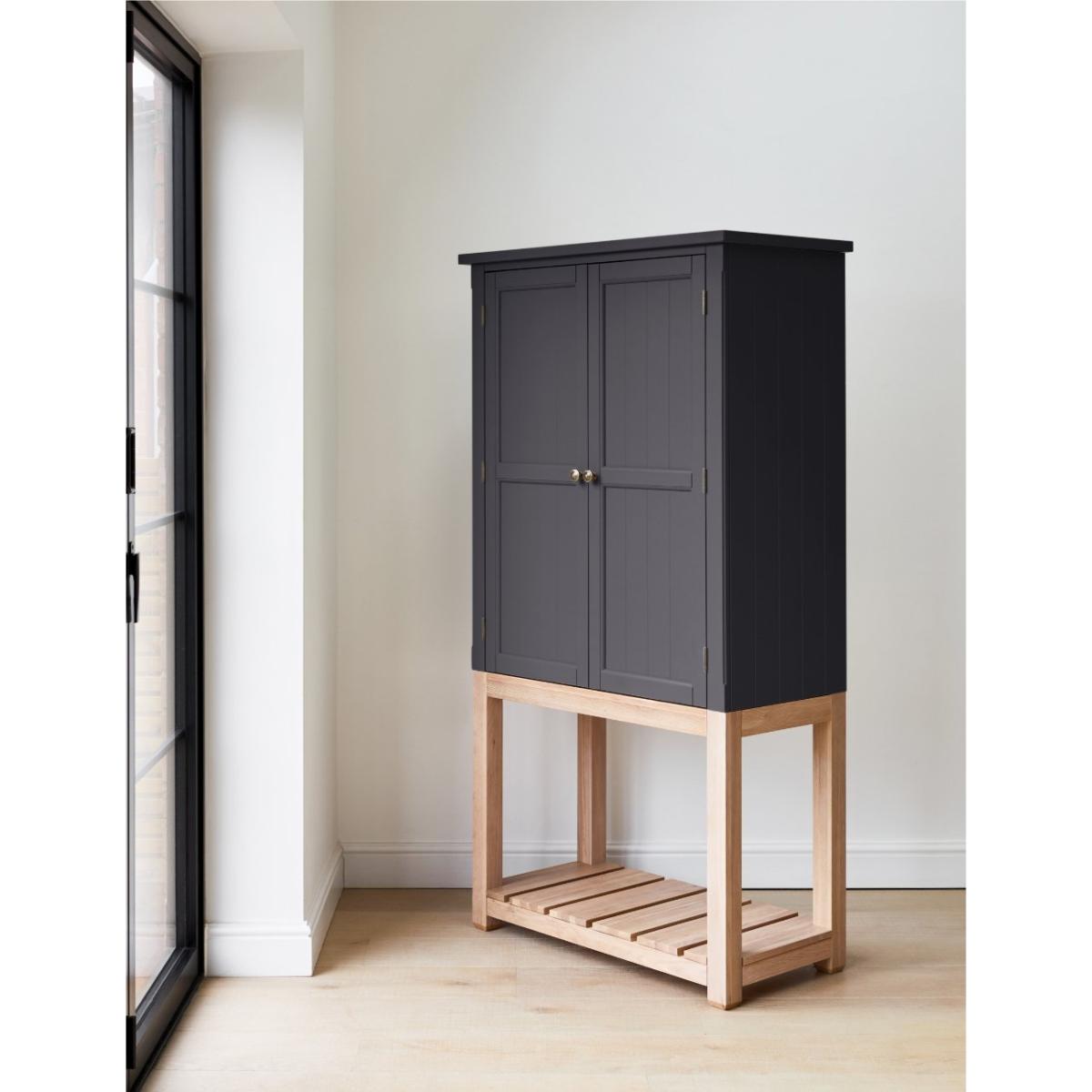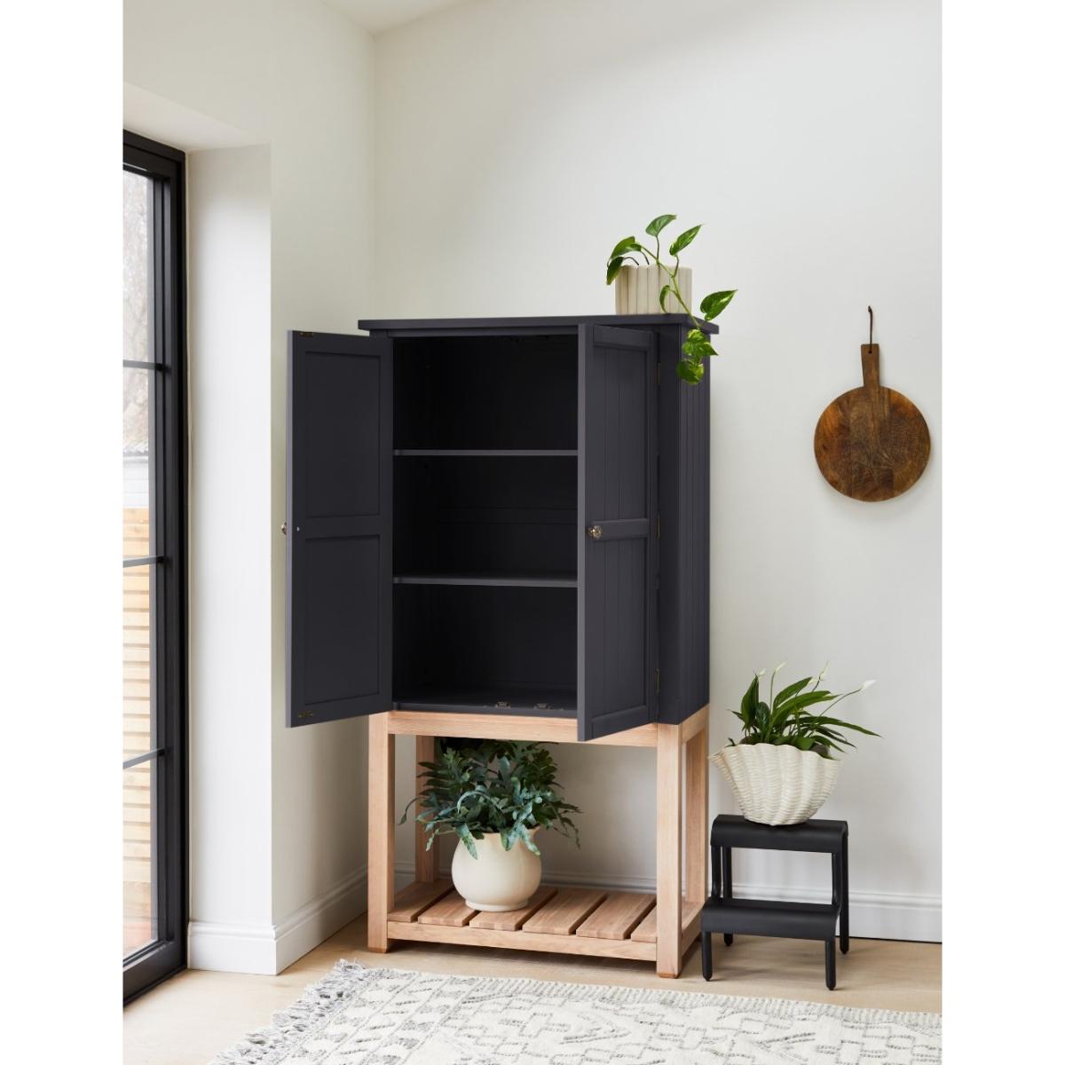 Maximise storage space and minimise clutter with our stand-alone Charcoal Wooden Kitchen Pantry Cabinet. This beautiful larder cabinet has removable shelves, two doors and an open storage shelf to suit all your kitchen needs. Our freestanding pantry cabinet offers a contemporary twist on the classic farmhouse interior style with plenty of storage space for all your favourite dinner sets, such as the Pearl Stoneware Collection and the Scalloped Edge Tableware Set. It's the perfect addition to any kitchen interior, bringing style and functionality to your home. Pair this pantry cabinet with our matching console table.