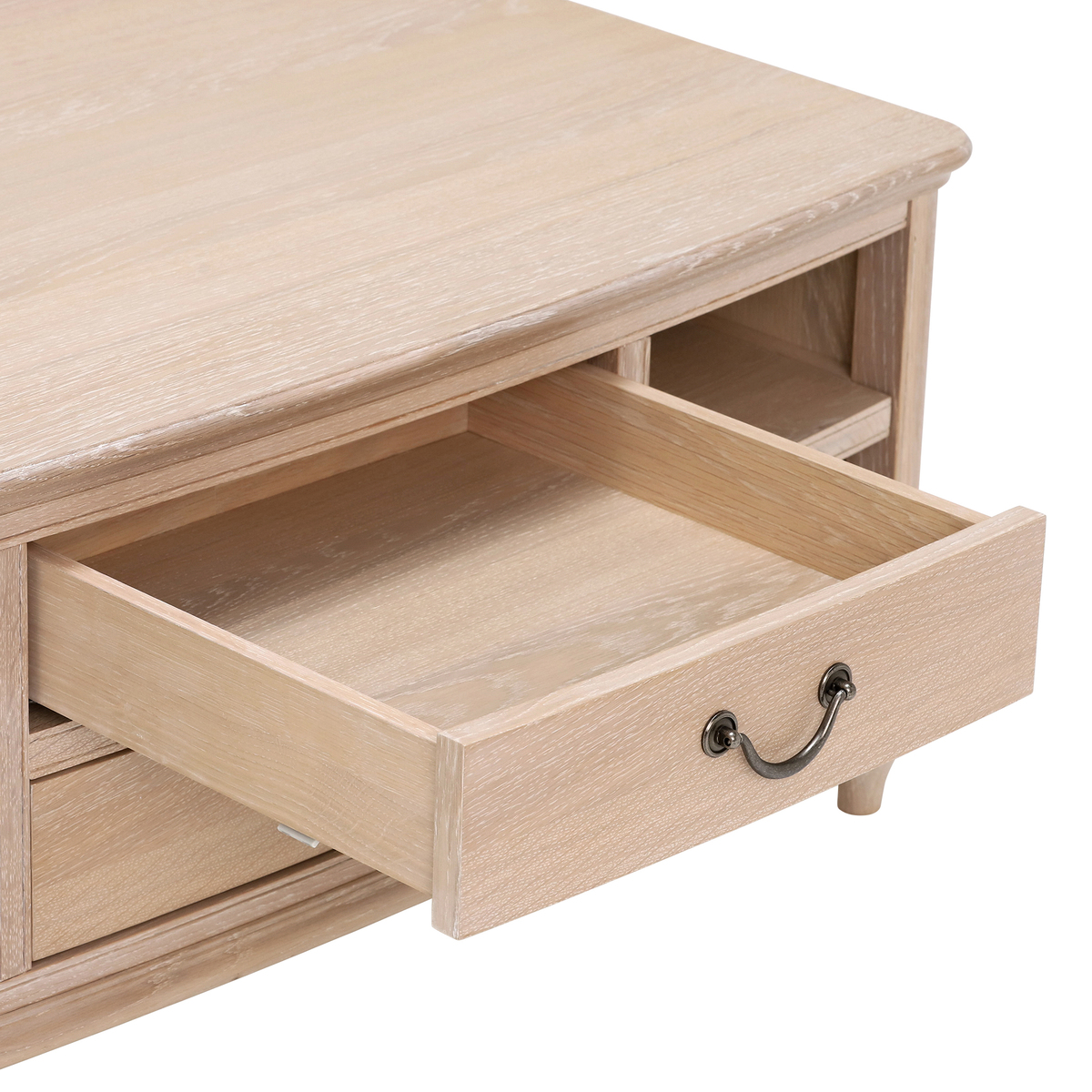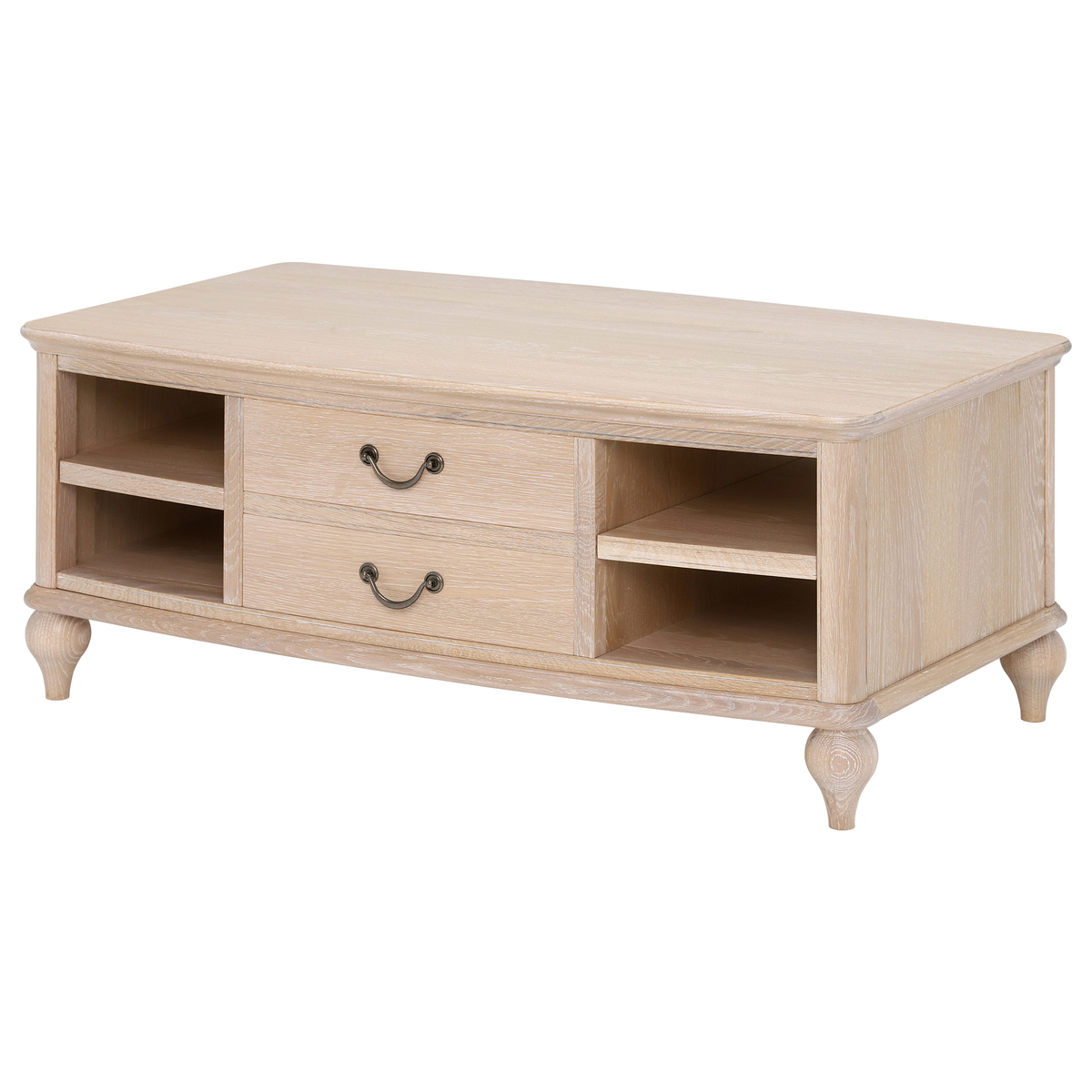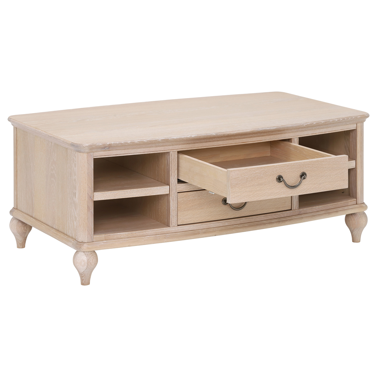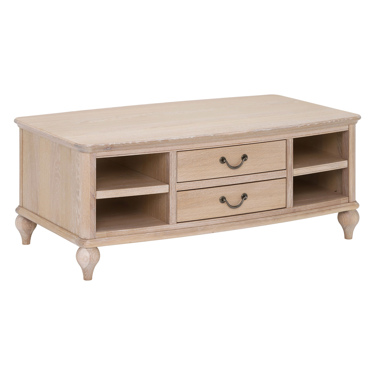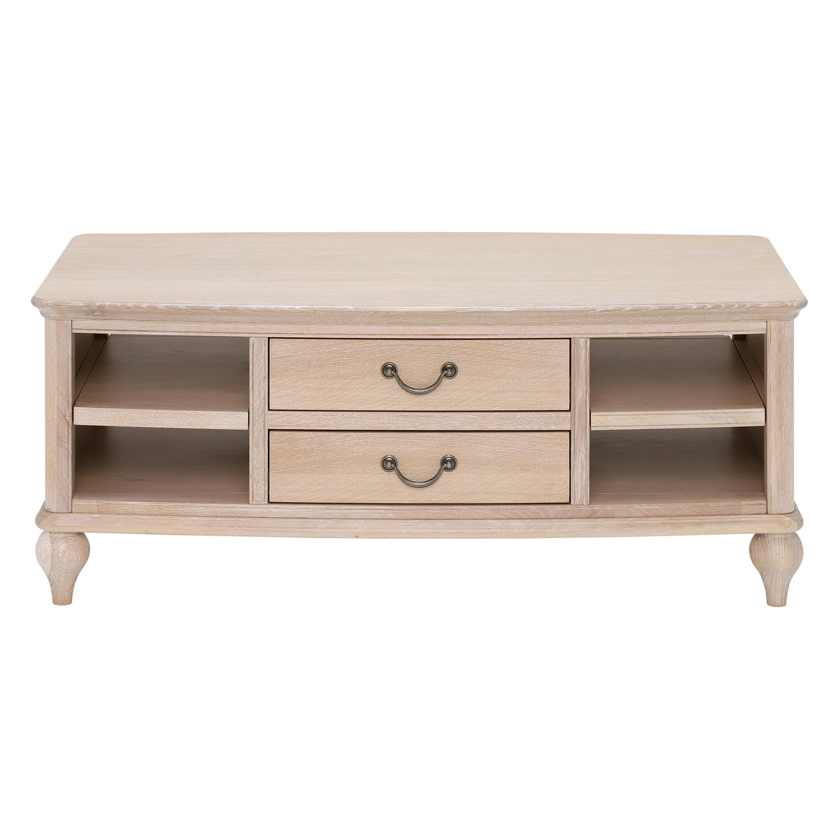 Create a stunning focal point in your living space with the Charente coffee table. Crafted from American oak and featuring a rustic chalk finish, antique brass handles and beaded details this piece has a timeless elegance. Boasting fantastic storage options with open shelving and large drawers you’ll find space for magazines, remote controls and much more. A practical and charming addition to your home.
