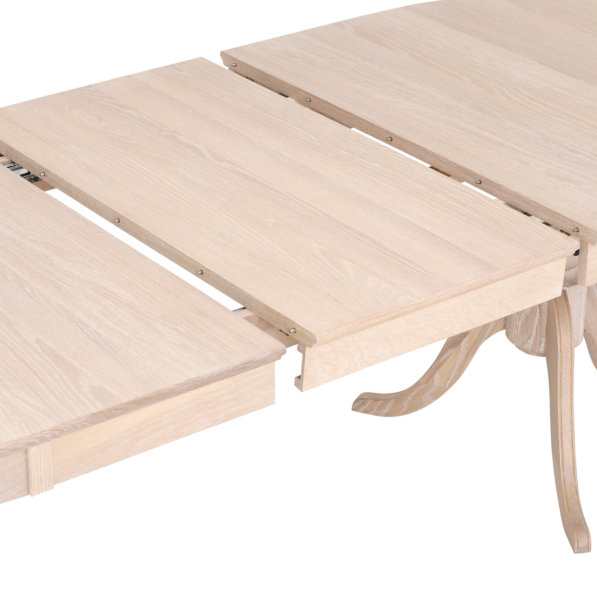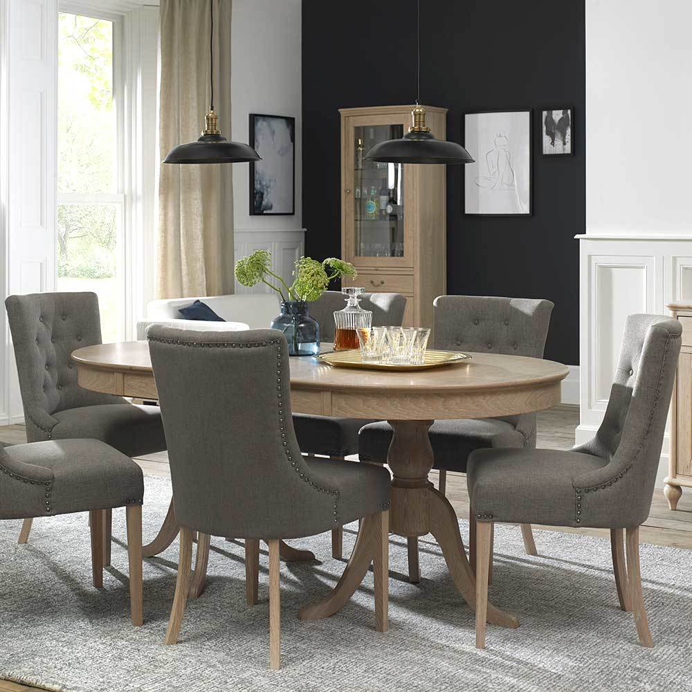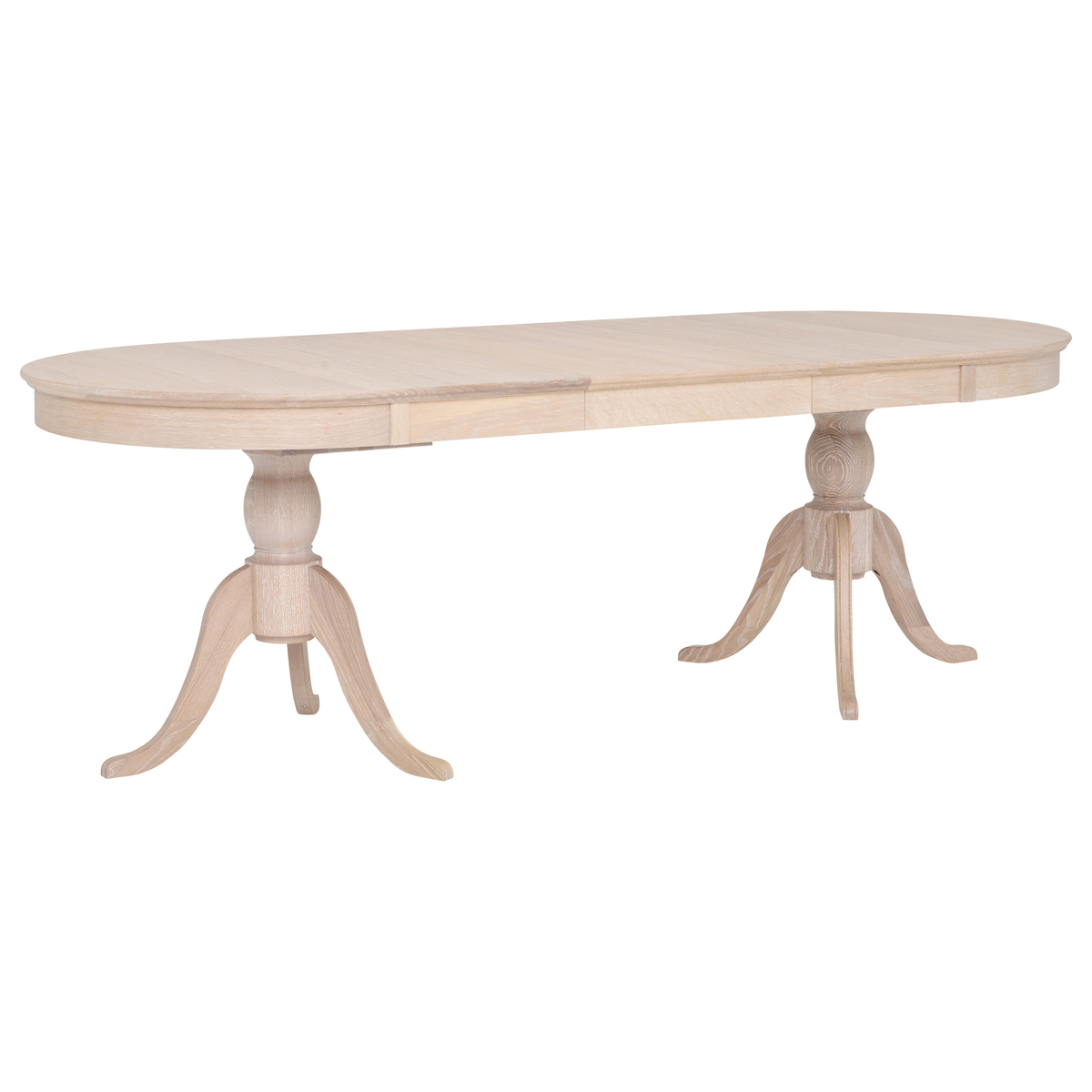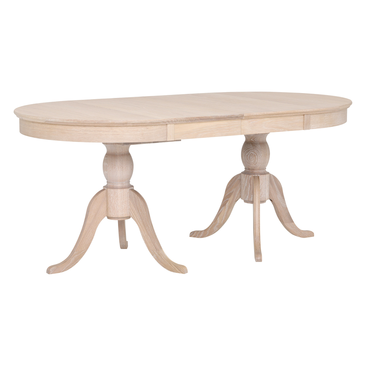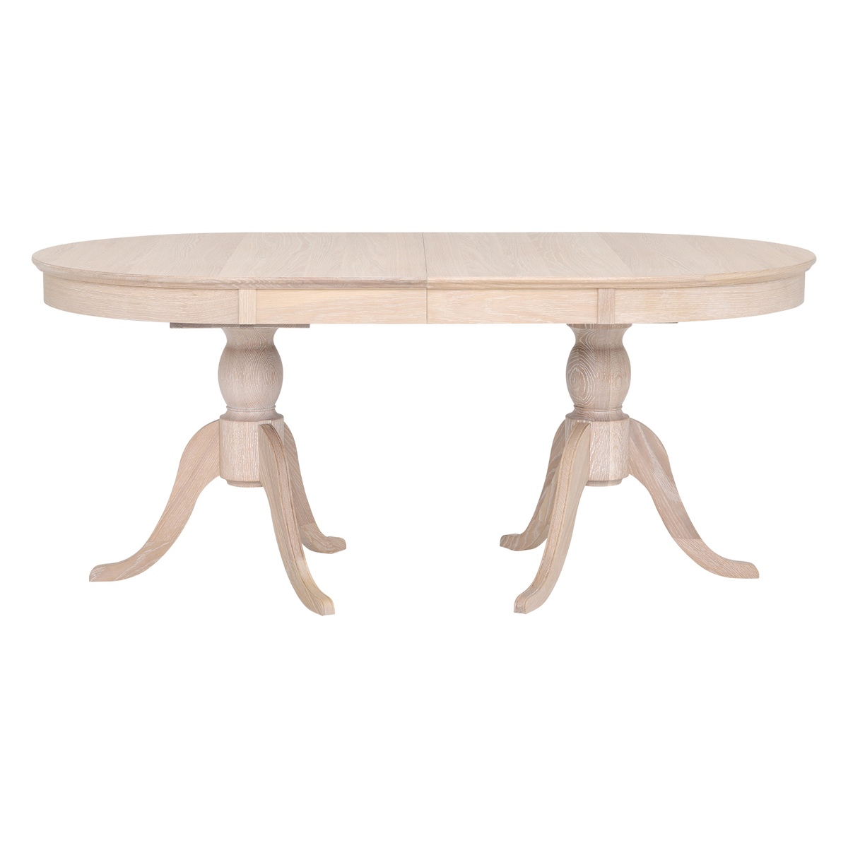 Featuring pedestal legs and a brushed chalk finish this solid American Oak piece is classically styled, seating 6-8 people the Charente extending dining table is a timeless and elegant addition to your dining room.