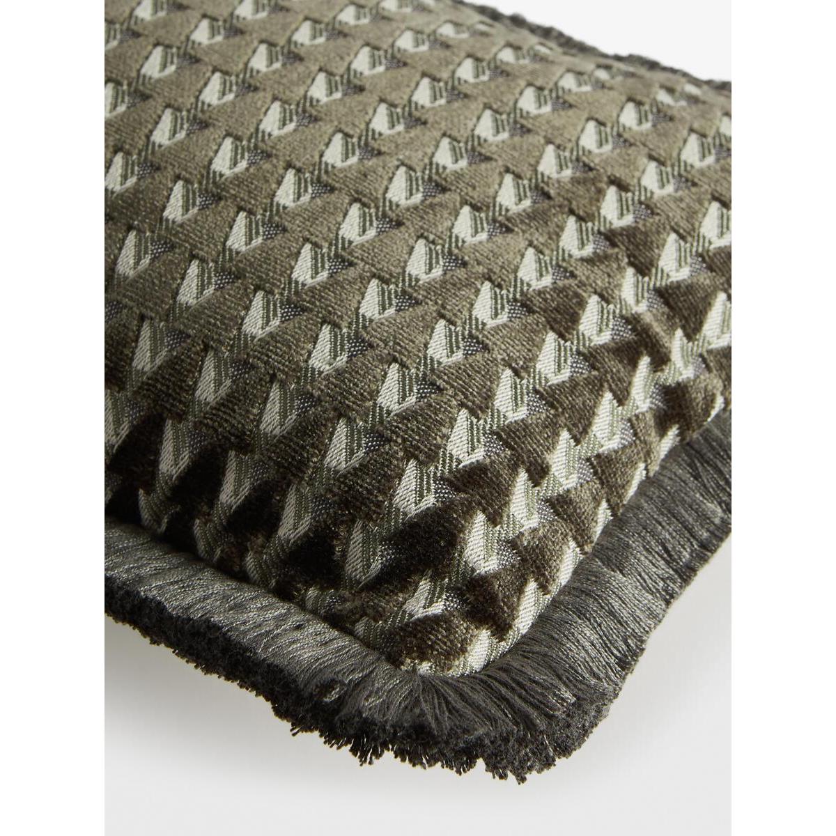 Inspired by velvet fabrics seen in Soho Warehouse, LA, our Charis cushion is made from a woven jacquard fabric with a small-scale geometric pattern and eyelash fringing. Layer with other sizes and colours in the range to create warmth and dimension. Woven jacquard fabric Oblong design Geometric design Eyelash fringing Available in three sizes and two colourways Inspired by velvet fabrics in Soho Warehouse