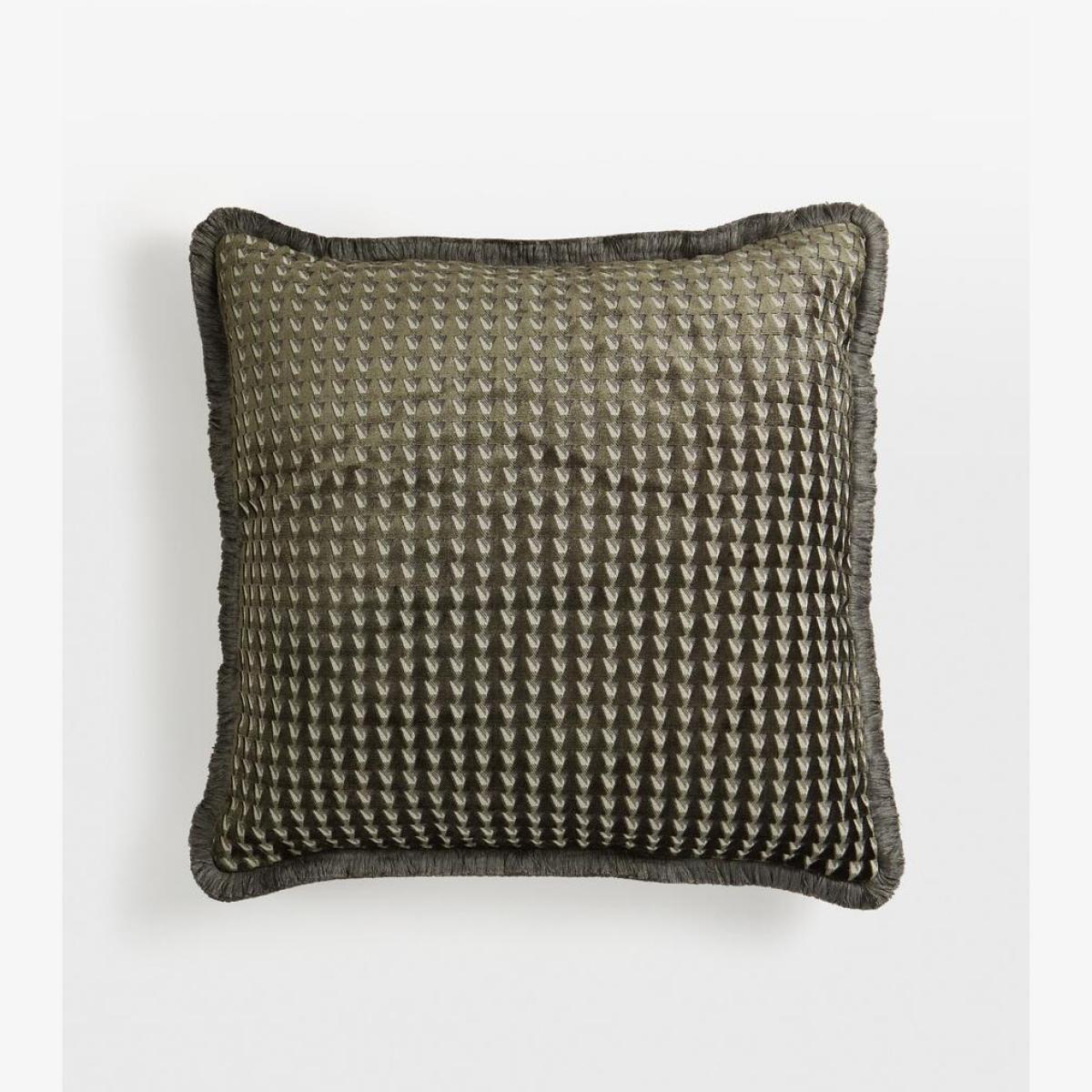 Inspired by velvet fabrics seen in Soho Warehouse, LA, our Charis cushion is made from a woven jacquard fabric with a small-scale geometric pattern and eyelash fringing. Layer with other sizes and colours in the range to create warmth and dimension. Woven jacquard fabric Large square design Geometric design Eyelash fringing Available in three sizes and two colourways Inspired by velvet fabrics in Soho Warehouse