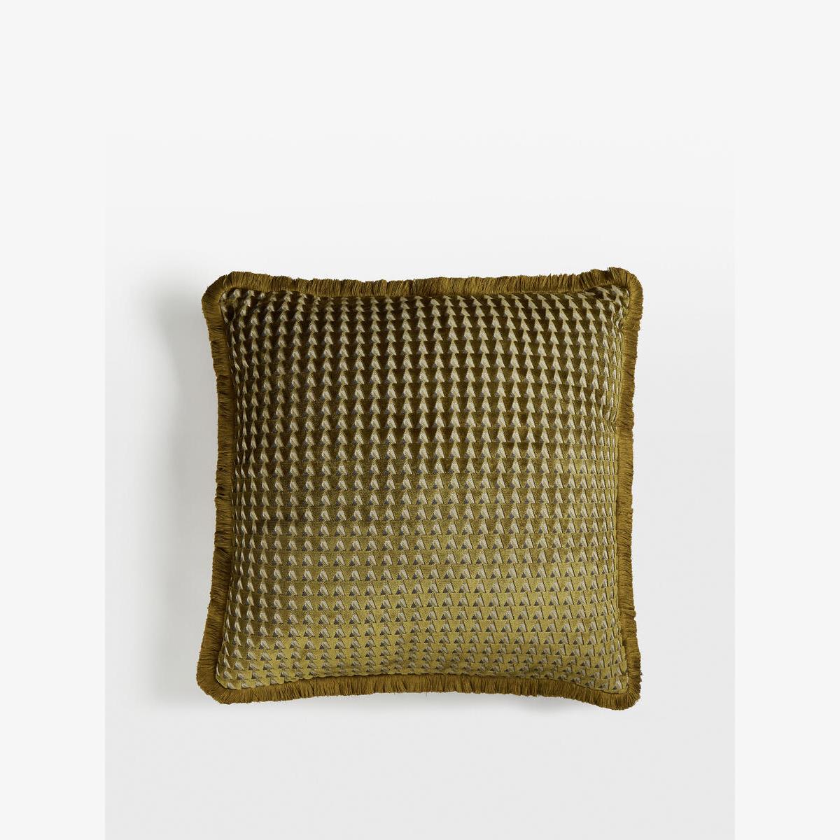 Inspired by velvet fabrics seen in Soho Warehouse, LA, our Charis cushion is made from a woven jacquard fabric with a small-scale geometric pattern and eyelash fringing. Layer with other sizes and colours in the range to create warmth and dimension. Woven jacquard fabric Large square design Geometric design Eyelash fringing Available in three sizes and two colourways Inspired by velvet fabrics in Soho Warehouse