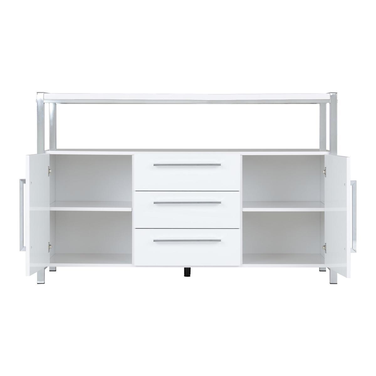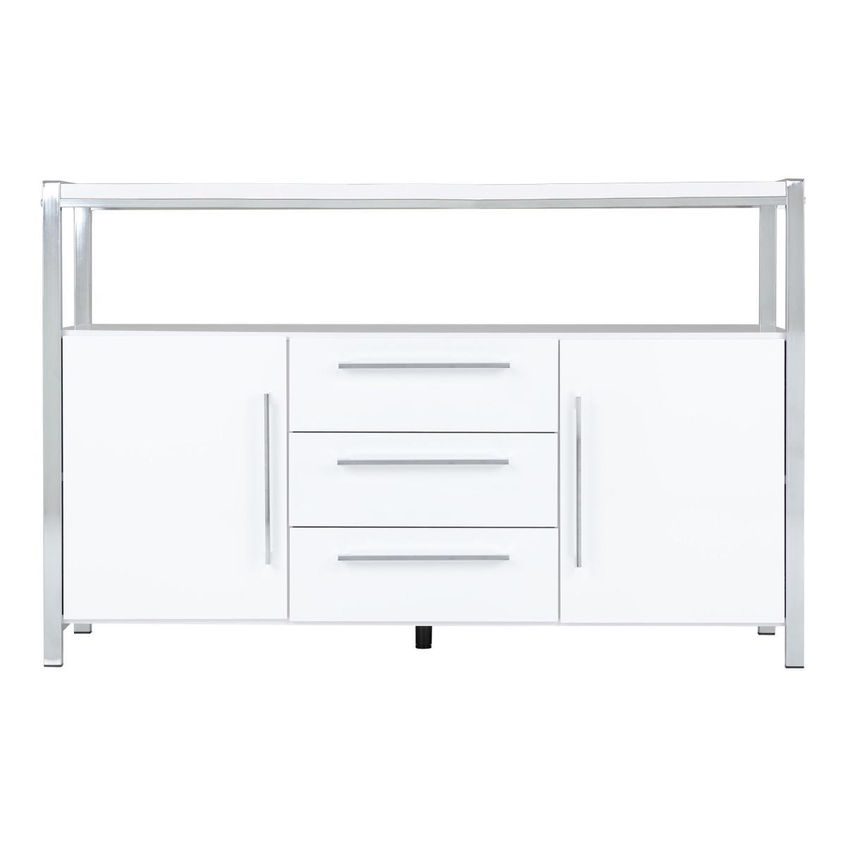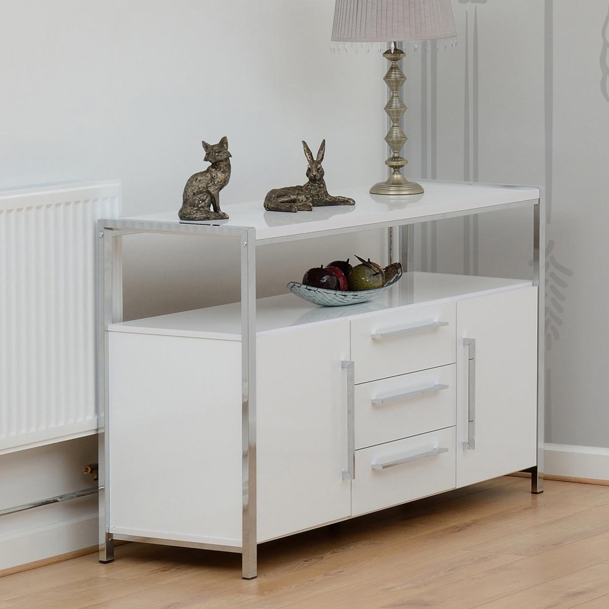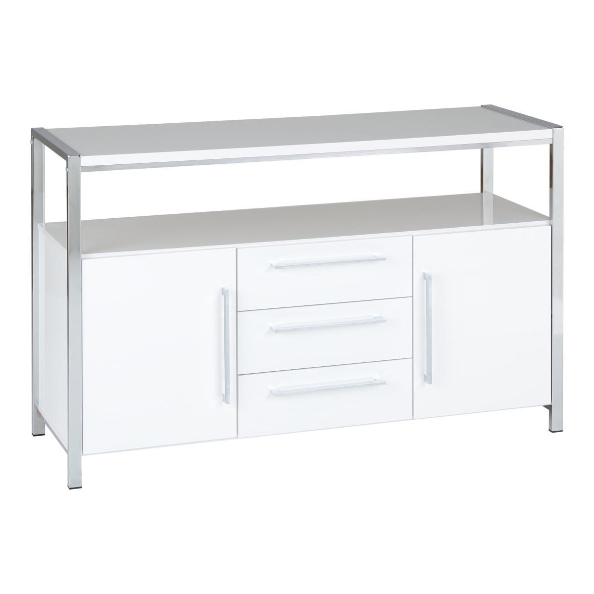Offering a contemporary design, the Charisma sideboard comes in a choice of grey, black and white colourways, complete with a glossy finish and chrome legs and handles. Featuring a large open shelf, two large cupboards and three drawers, this self-assembly sideboard provides plenty of storage space and would be a great addition to any modern living space. Please note, unfortunately we cannot deliver this item to Northern Ireland and the Channel Islands.